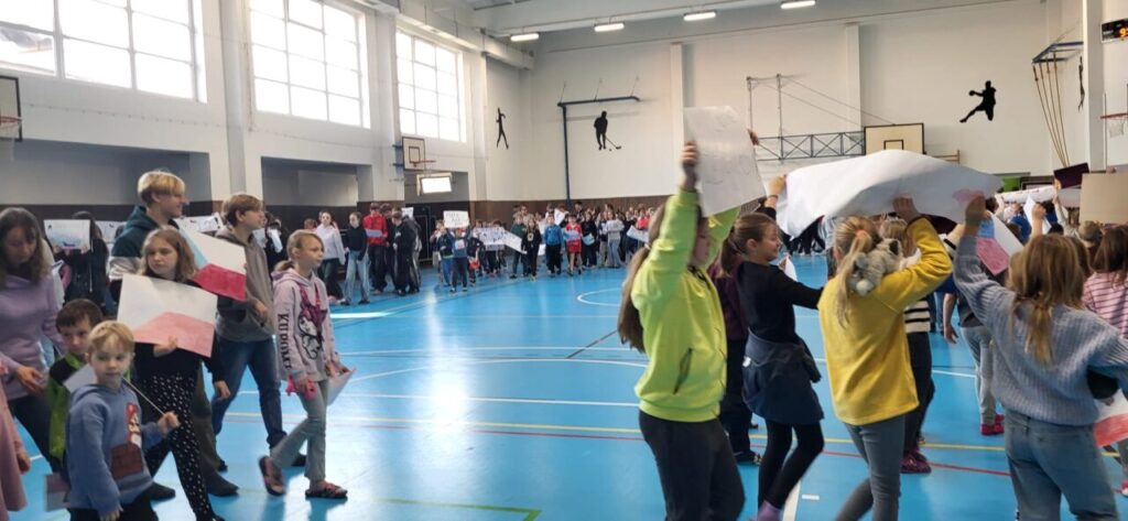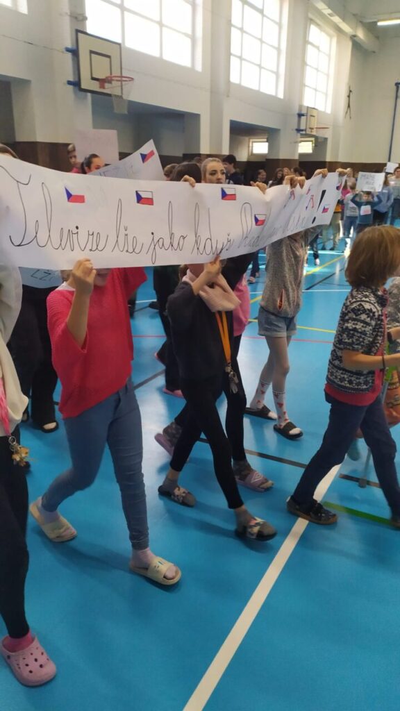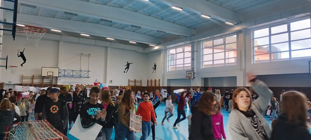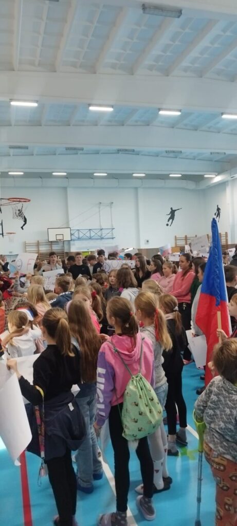 O velké přestávce jsme se sešli v tělocvičně a uspořádali původ.
