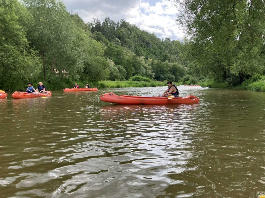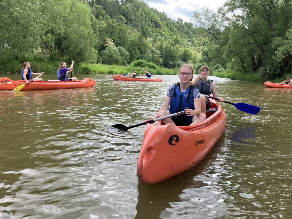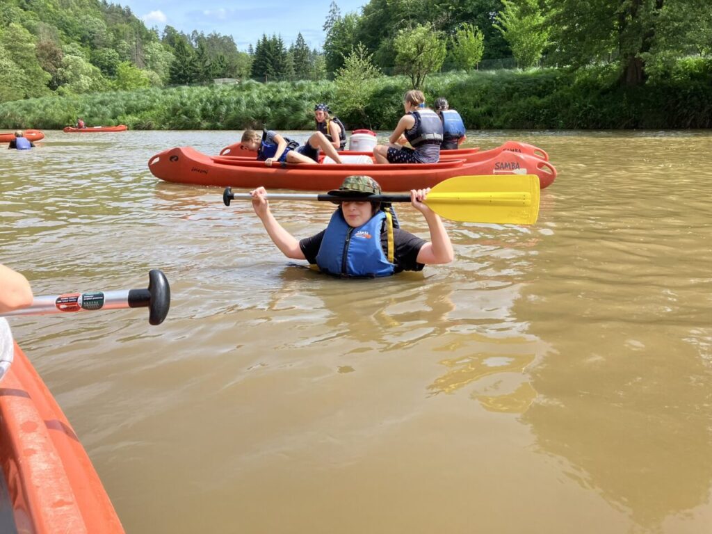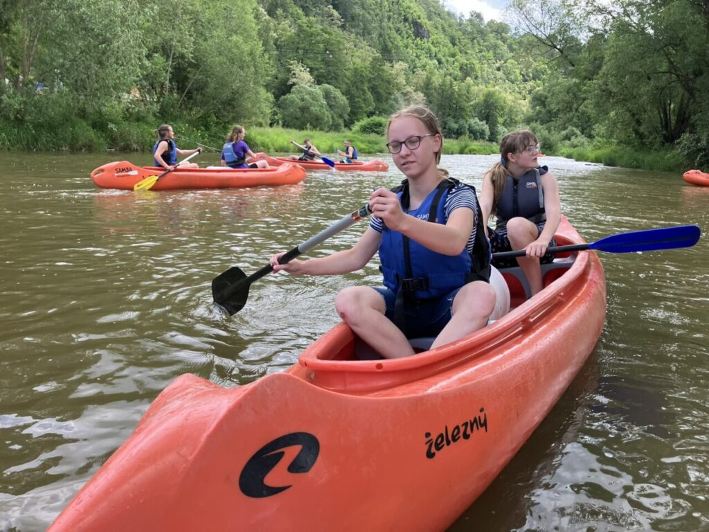 Cestovali jsme vlakem, sportovali, hráli hry, opékali špekáčky, navštívili jsme Sázavský klášter, nachodili mnoho kilometrů a užili si vodácký kurz. Splavili jsme 16 km trasu řeky Sázavy. Jsme dobří!😉🛶