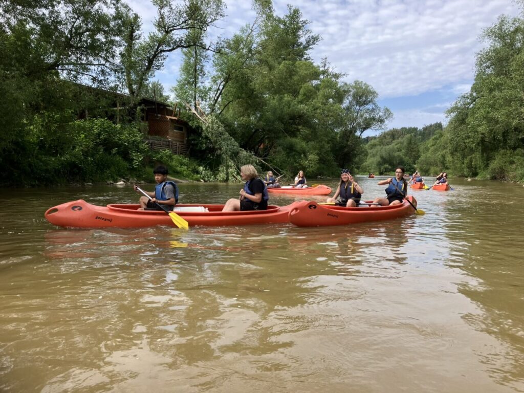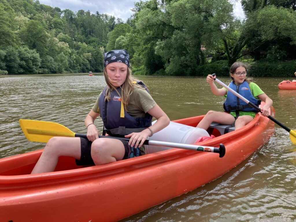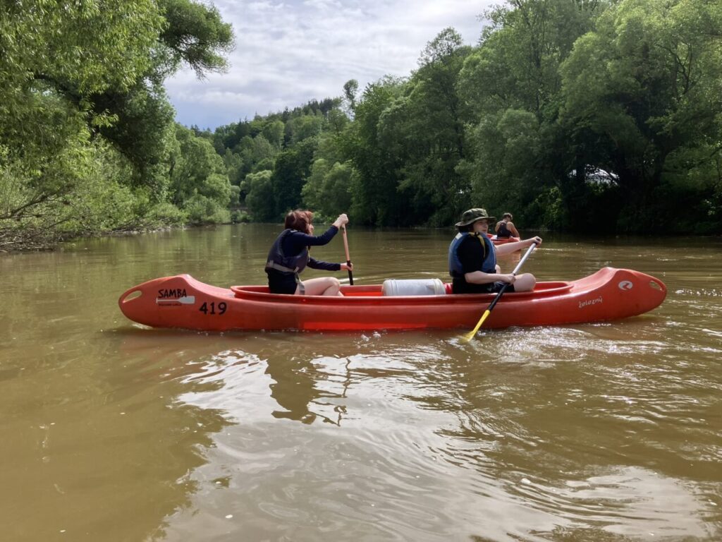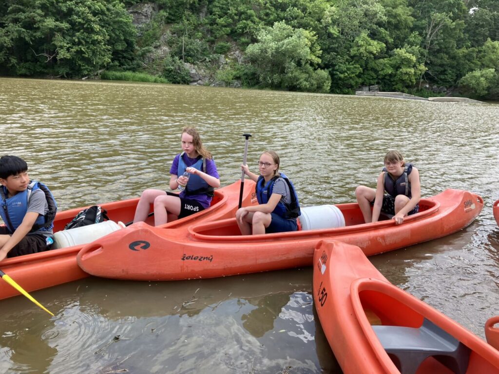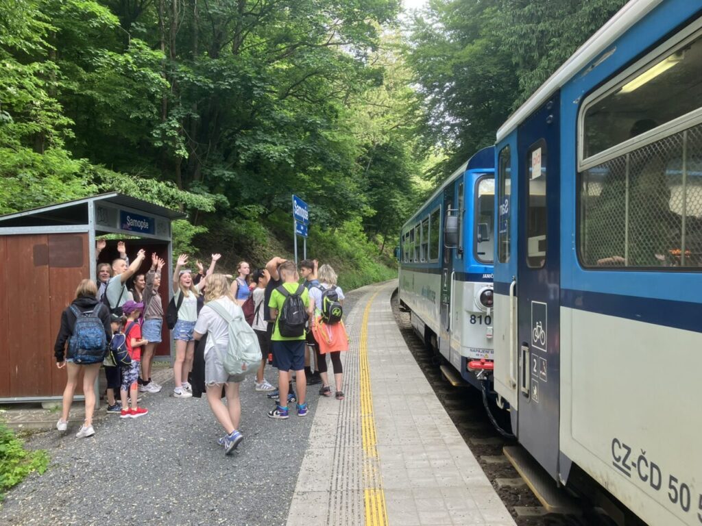 Cestovali jsme vlakem, sportovali, hráli hry, opékali špekáčky, navštívili jsme Sázavský klášter, nachodili mnoho kilometrů a užili si vodácký kurz. Splavili jsme 16 km trasu řeky Sázavy. Jsme dobří!😉🛶