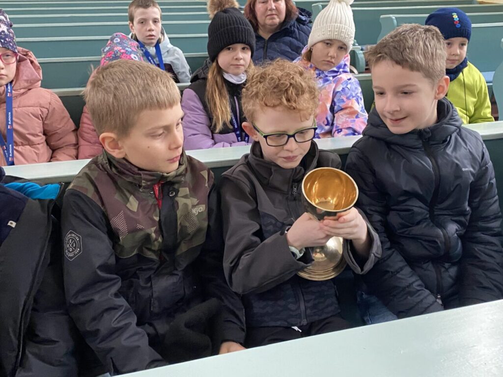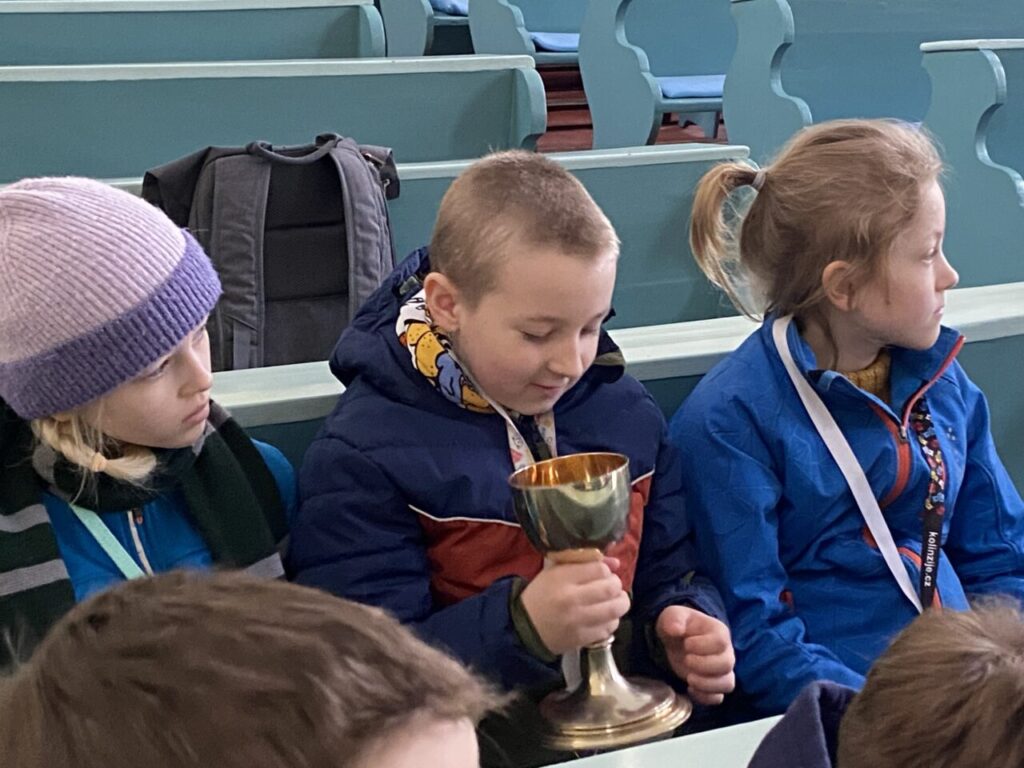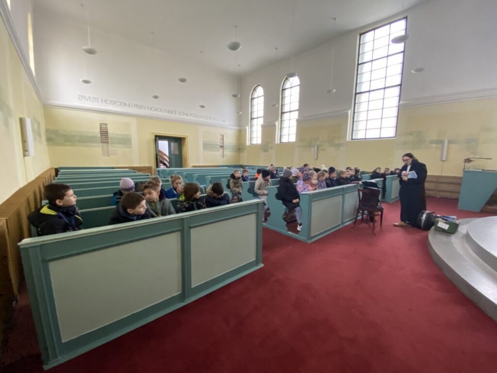 Ve středu 1. 4. jsme se vydali na velikonoční výpravu do města. Nejprve jsme navštívili evangelický kostel, kde nám paní farářka Romana Čunderlíková převyprávěla biblický velikonoční příběh, zazpívali jsme si, obhlédli jsme varhany, mohli se na cokoliv zeptat. Pak jsme se provětrali na parkánech. Hledali jsme správné odpovědi na otázky týkající se velikonočních zvyklostí a tradic, luštili jsme tajenku a vzkaz. Dobře nám bylo.