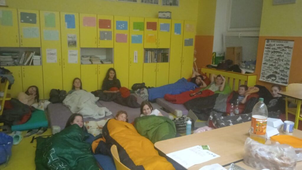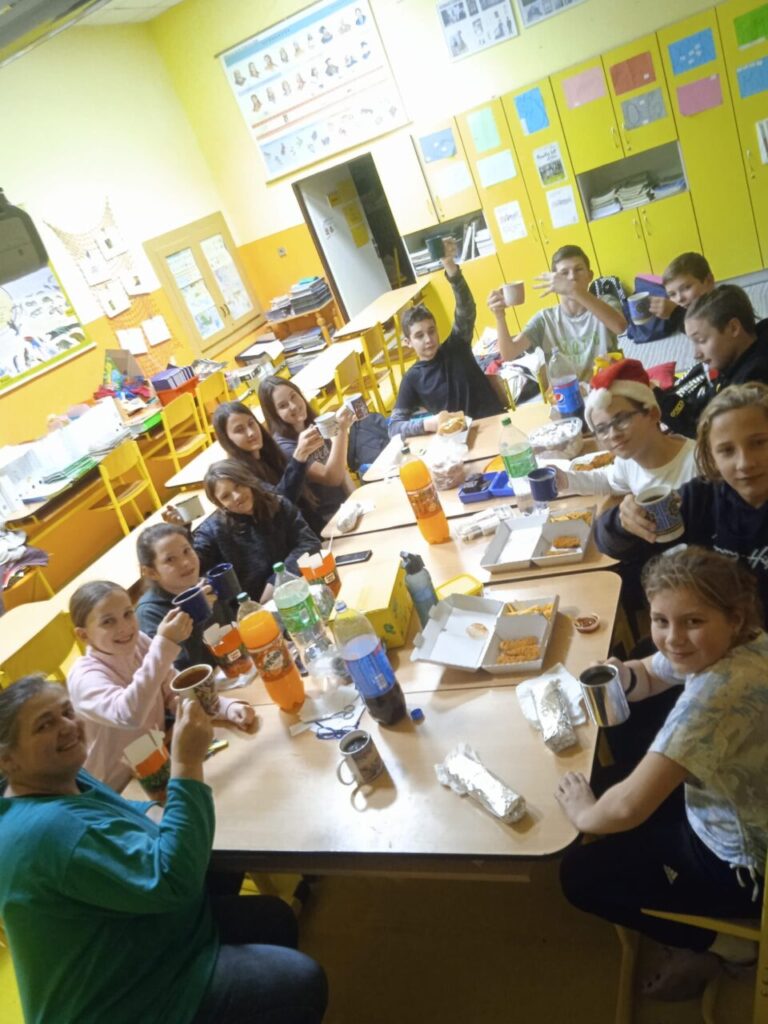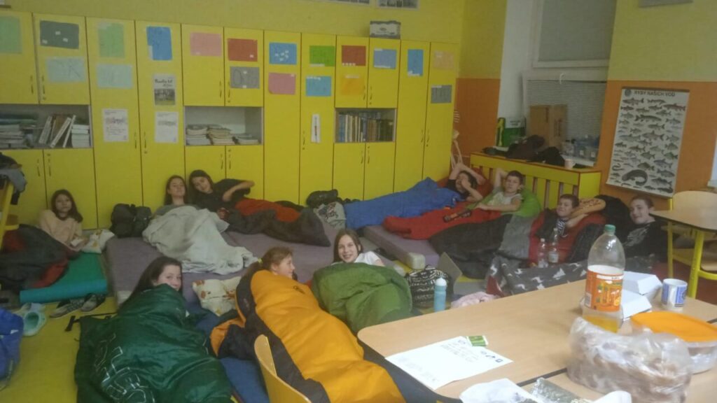 Na programu bylo: hry ve třídě, vycházka ke stromku na náměstí s koledou u podia :), něco dobrého k snědku, bojovka pro šesťáky, trocha sportu v tělocvičně, film na dobrou noc.