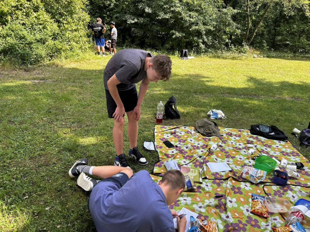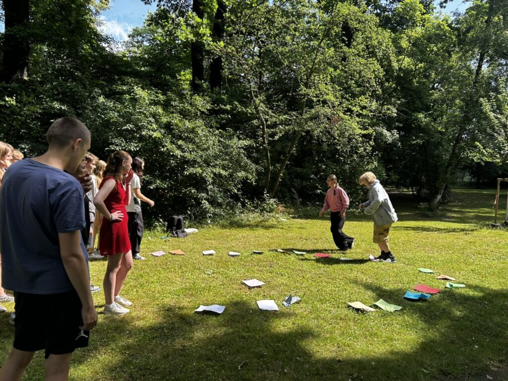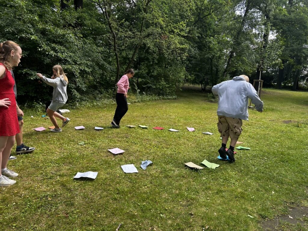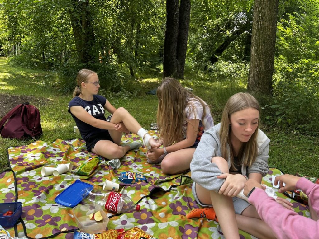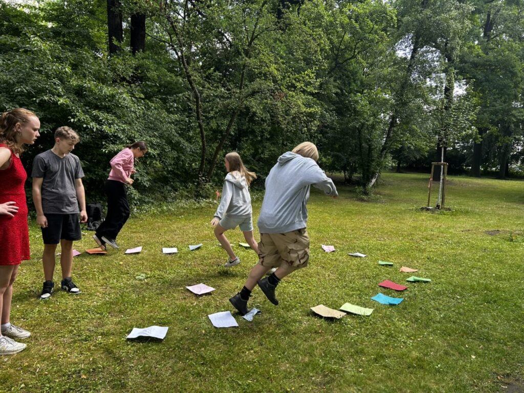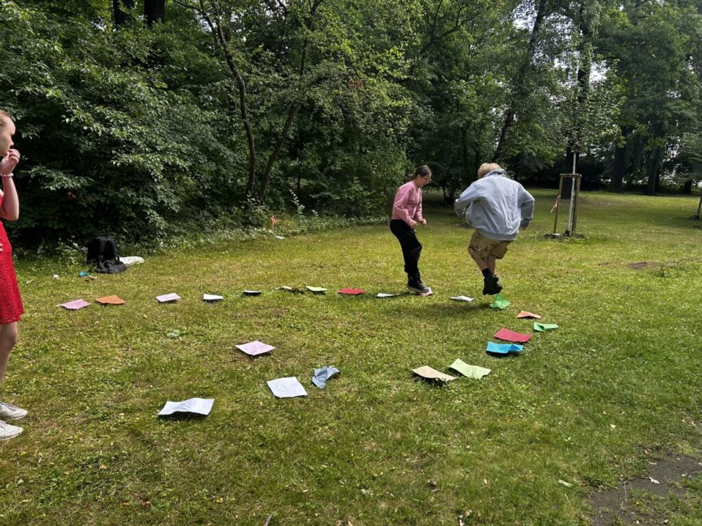 V úterý 24. 6. 2025 jsme celé dopoledne strávili venku. Věnovali jsme se problematice ochraně člověka za mimořádných událostí. Společně jsme se pobavili, jak se chránit a chovat při bouřce, připomněli jsme si, co vše patří do evakuačního zavazadla. Na různých stanovištích si žáci ověřovali své znalosti ze základů zdravovědy, prakticky jsme si zkoušeli stabilizovanou polohu, první pomoc a techniky obvazování.