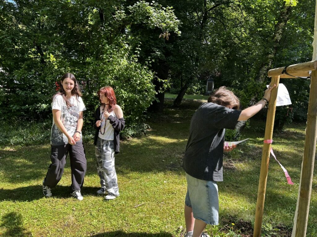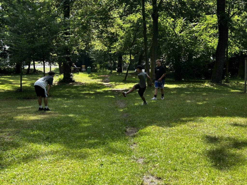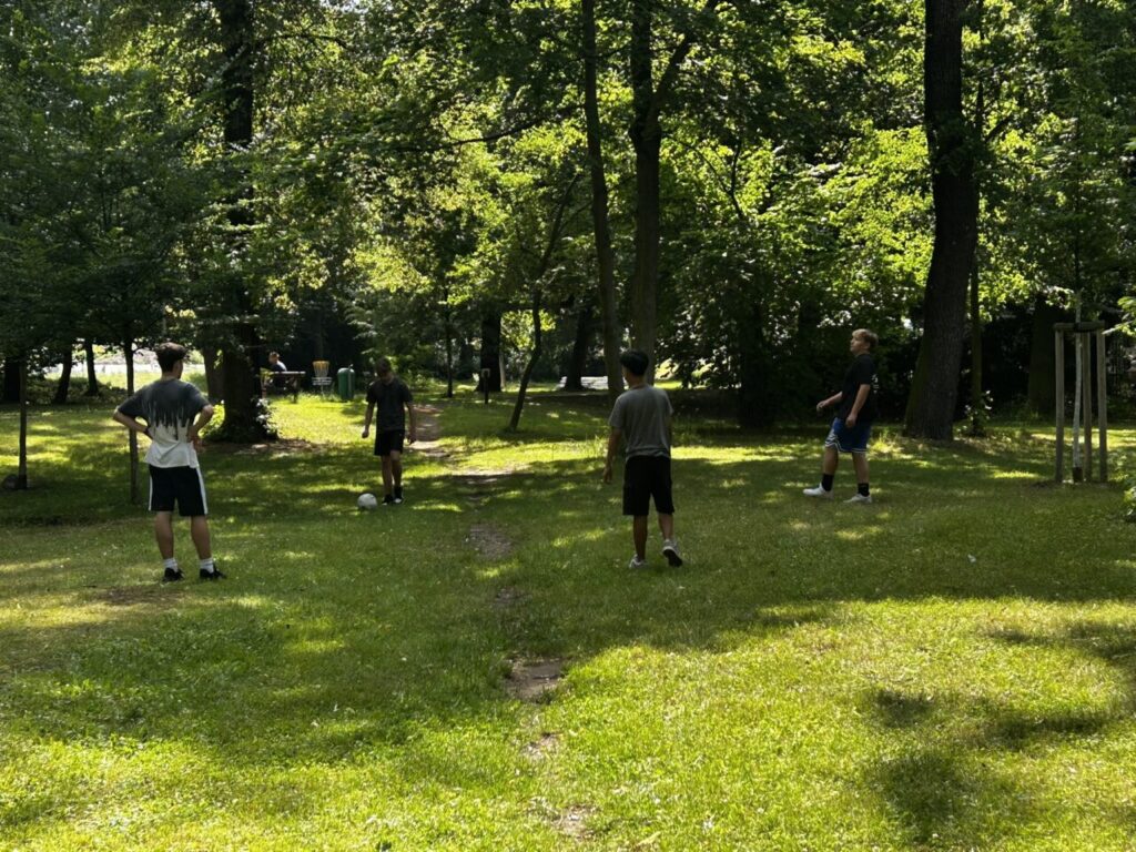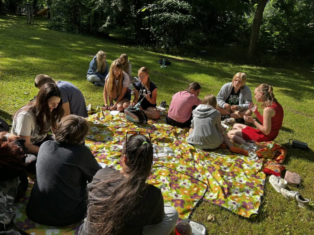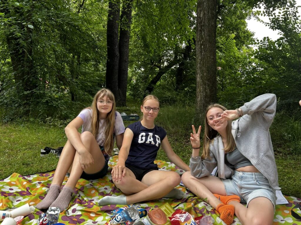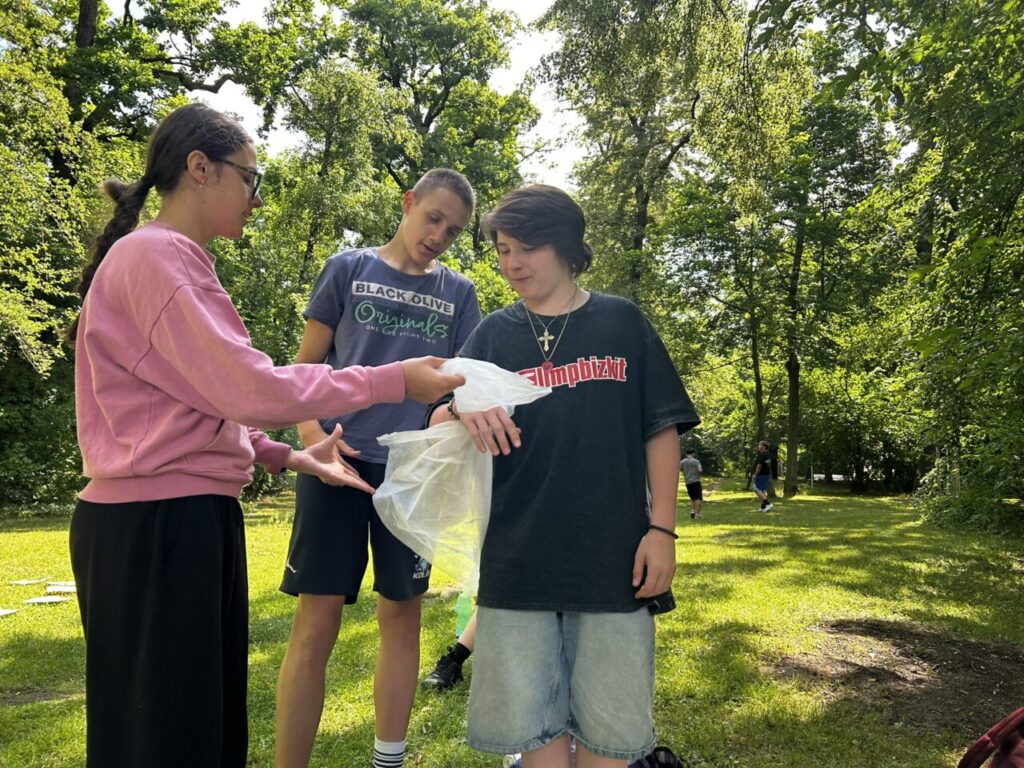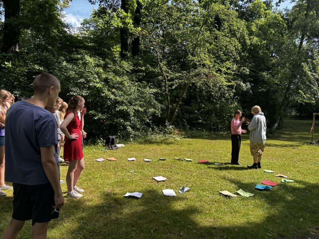 V úterý 24. 6. 2025 jsme celé dopoledne strávili venku. Věnovali jsme se problematice ochraně člověka za mimořádných událostí. Společně jsme se pobavili, jak se chránit a chovat při bouřce, připomněli jsme si, co vše patří do evakuačního zavazadla. Na různých stanovištích si žáci ověřovali své znalosti ze základů zdravovědy, prakticky jsme si zkoušeli stabilizovanou polohu, první pomoc a techniky obvazování.