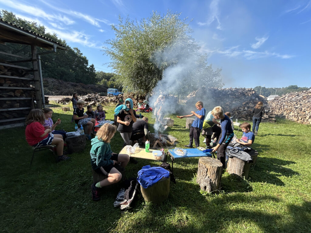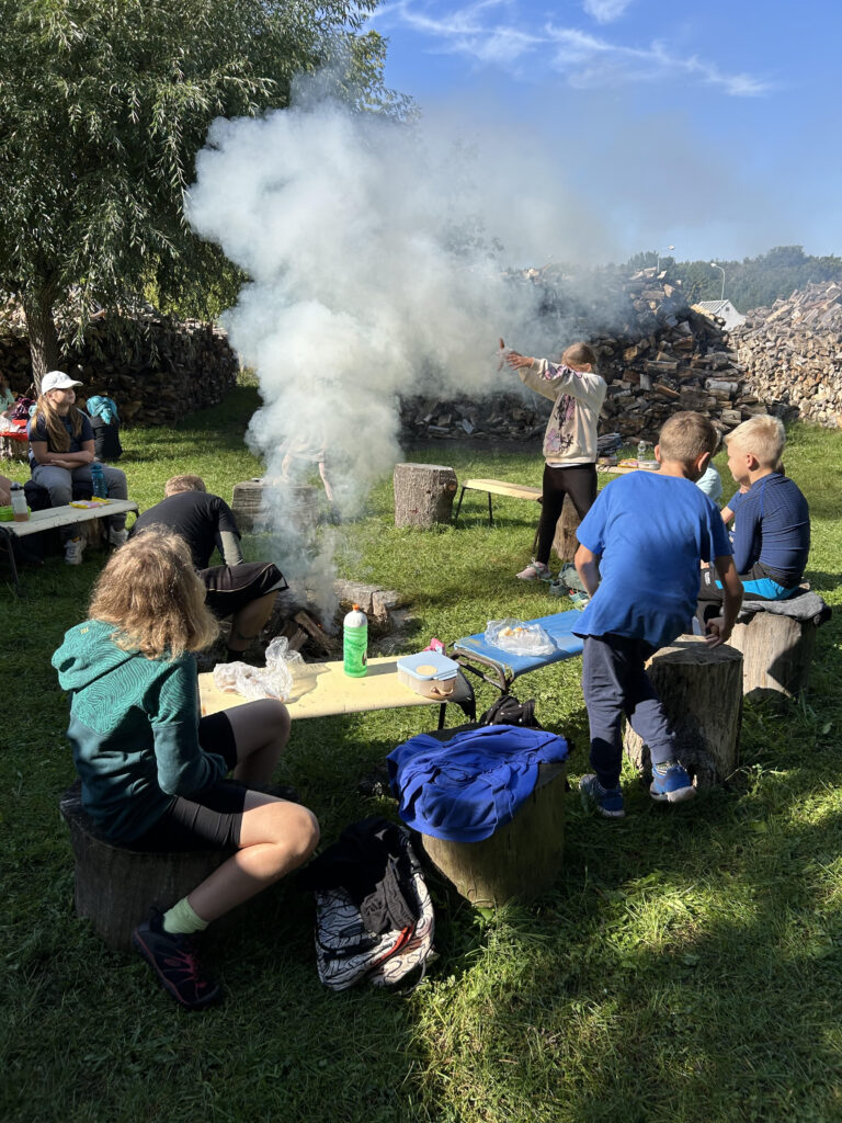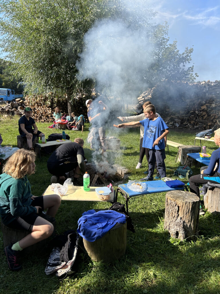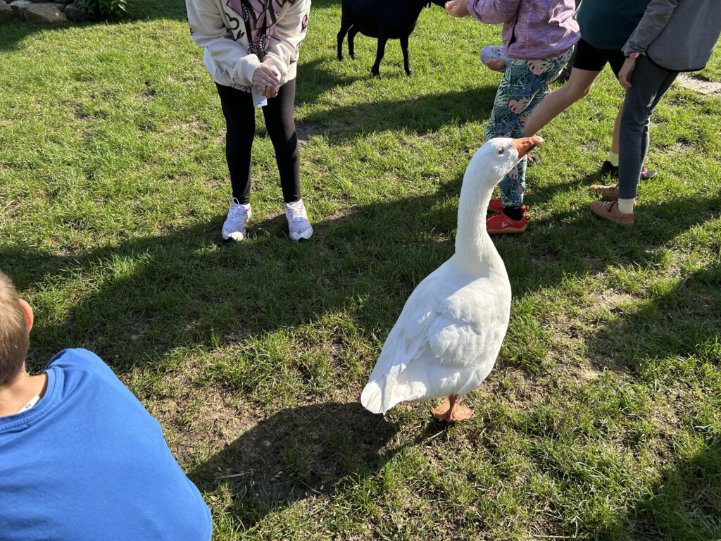 Dnešní dvakrát odložený adaptační den zahrnoval (skoro) pravou sněhovou koulovačku, krátkodobou sněžnou slepotu, pouštění lodiček, osobní setkání se s pejsky, kozičkami a jednou obzvláště drzou husou. Zakončili jsme opékáním