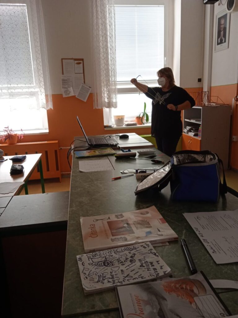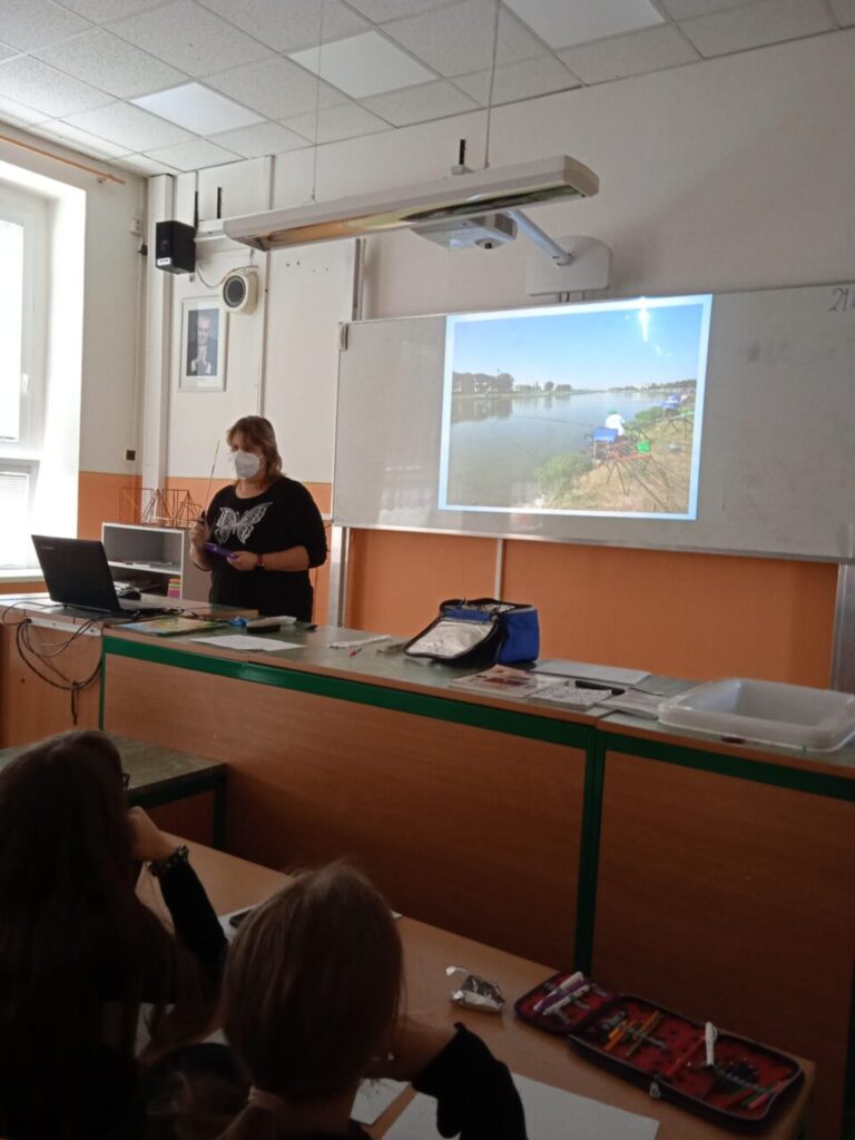 Žáky 7. A a 7. B  seznámila s našimi rybami a sportovním rybolovem mistryně republiky v plavané Hana Purkrábková z MO ČRS Plaňany.