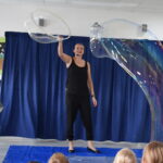 Školní družinu navštívila Ingrid K se svým programem nazvaným Bublinková show. Nejprve nás čekalo vystoupení s pejskem Bellou, poté jsme zhlédli balanc se sklem a mečem, tanec s obručemi a žonglování. Pak následovala samotná bublinková show s malými, velkými až maxi bublinami a s jejich různými kreacemi. Představení se nám všem líbilo.