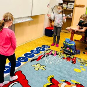Prvňáčci se seznamují s rytmem a číselnou osou pomocí krokovacího pásu. Nejdříve se učí pochodovat a tleskat do rytmu (na různé říkanky). Poté trénují kroky u krokovacího pásu. Krokovací pás … » Zobrazit celý příspěvek