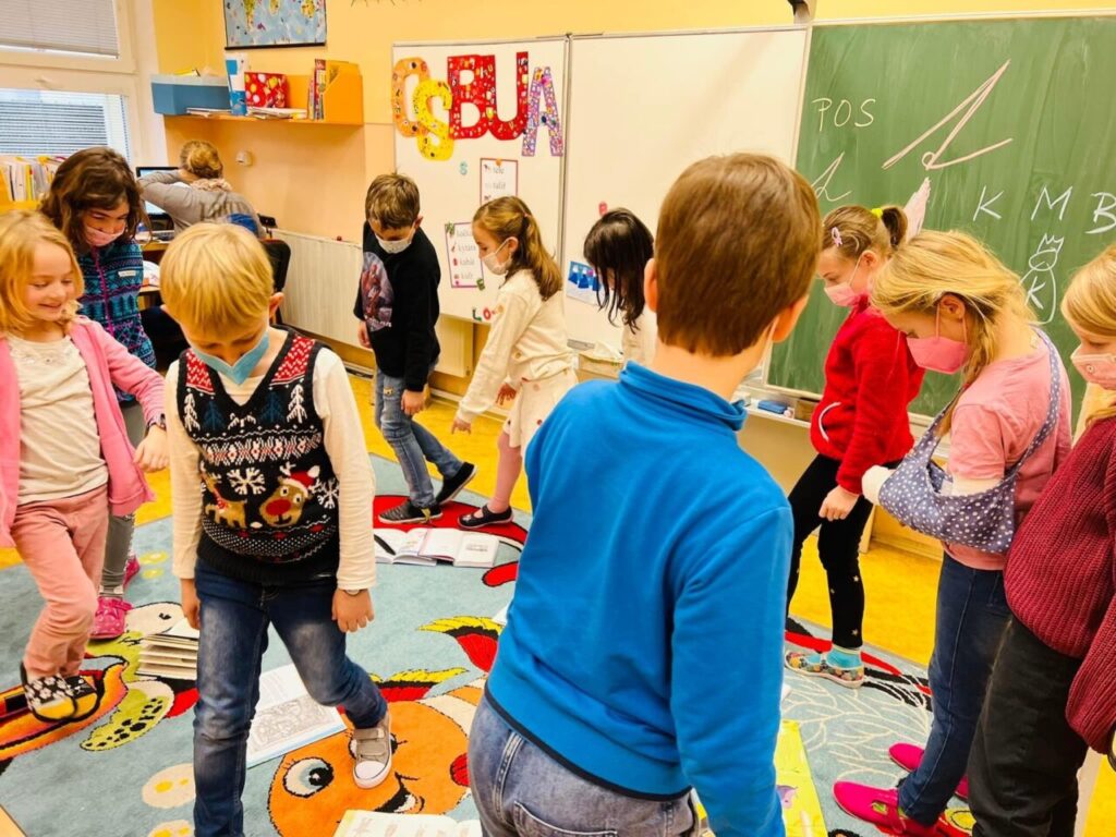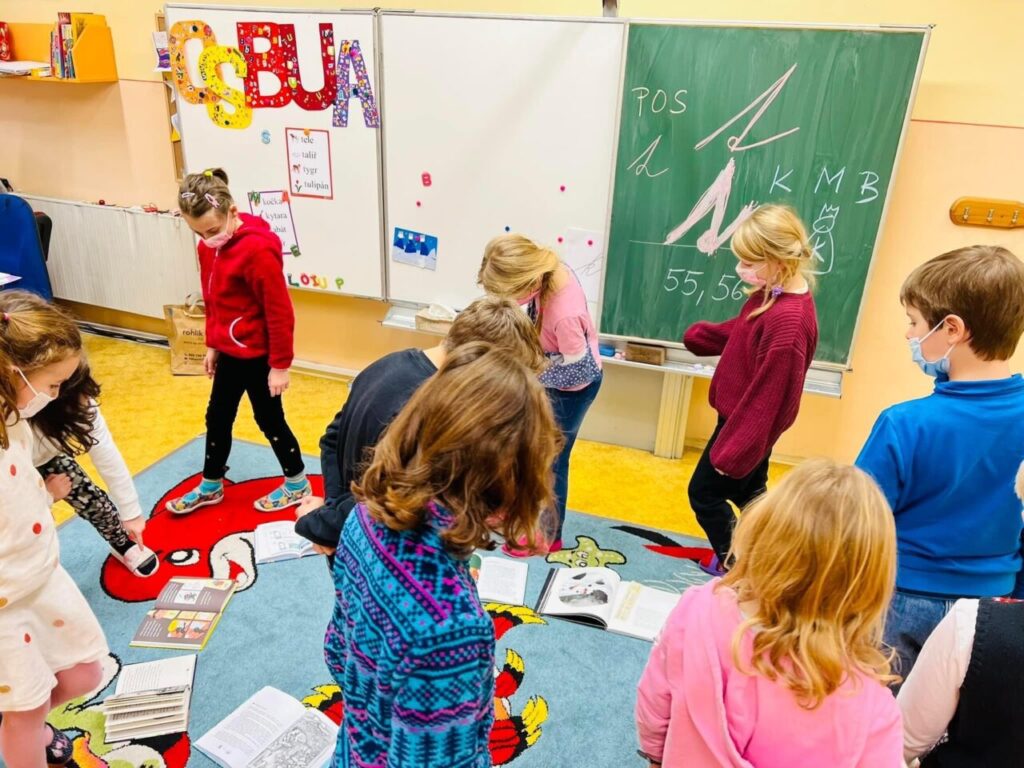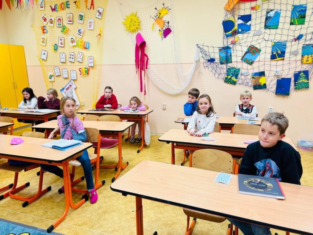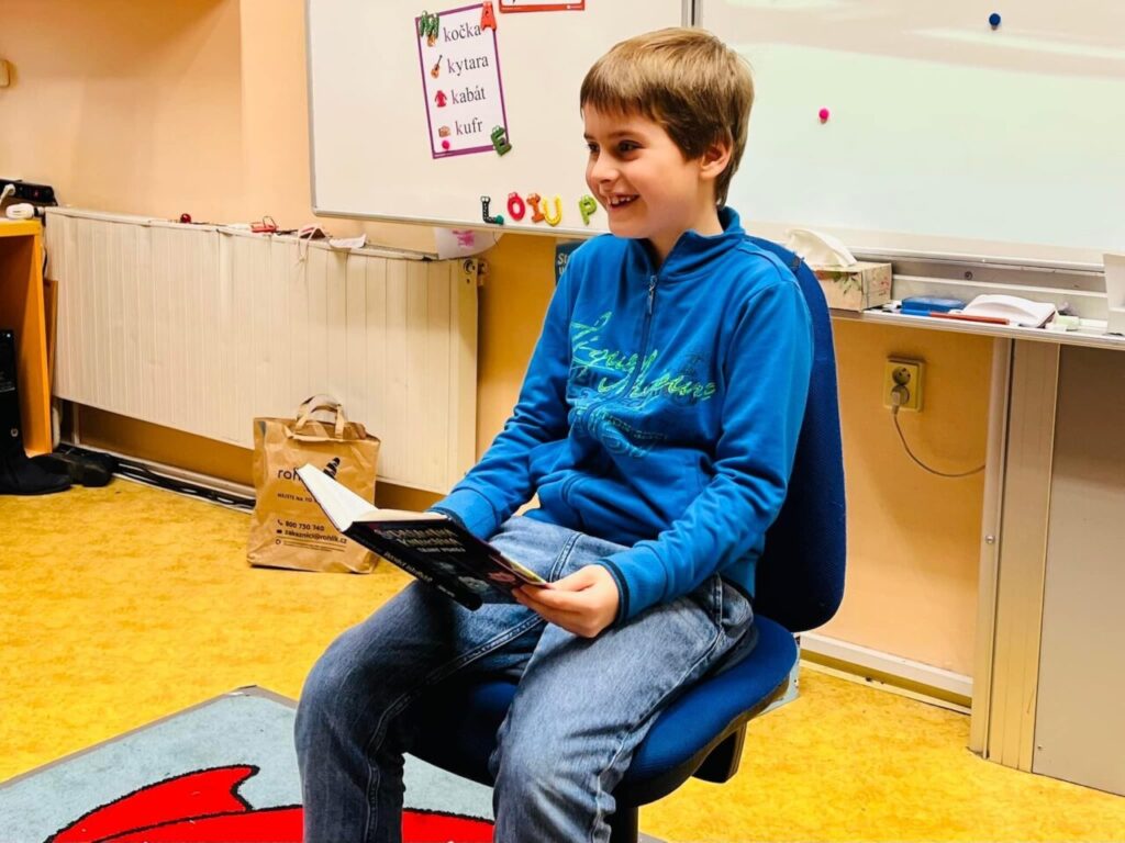 Děti si přinesly novou knížku od Ježíška a předvedly své čtenářské dovednosti před skupinou žáků. O knize musely umět povyprávět. Díky pravidelnému tréninku a skvělému vedení třídní učitelky, Míši Holé, žáci čtou naprosto fantasticky – kdejakého dospěláka by strčili do kapsy.