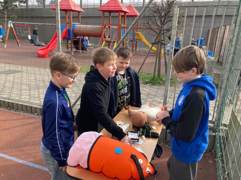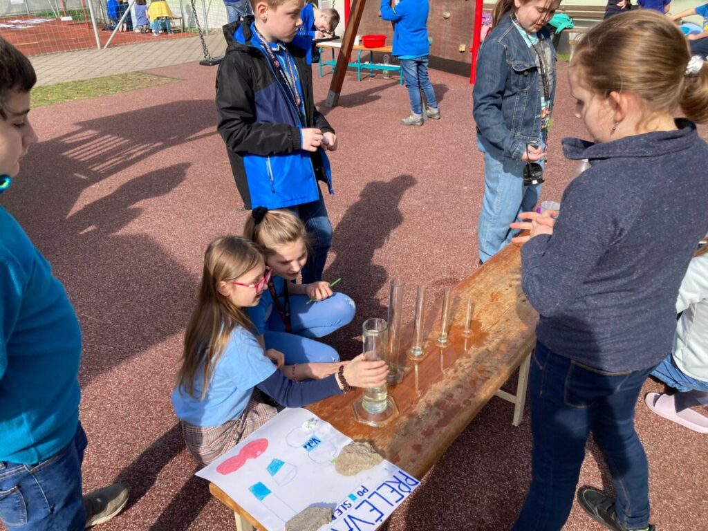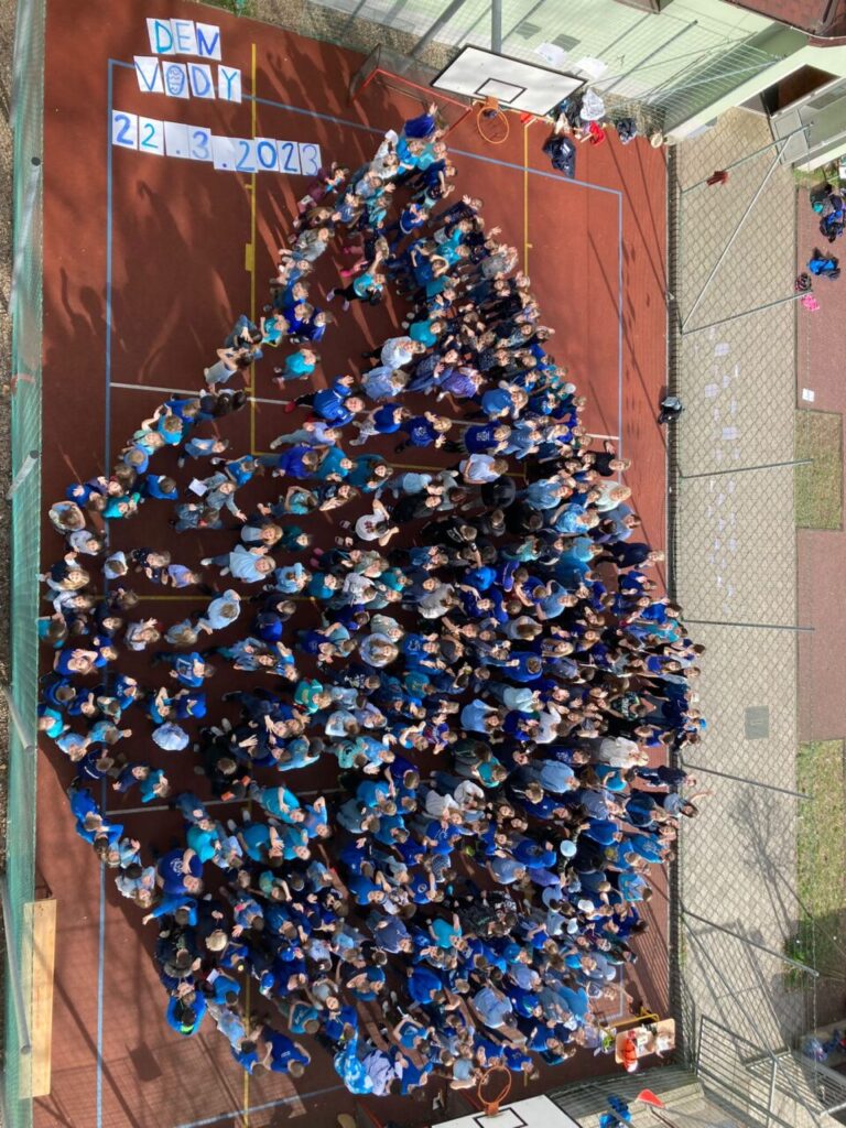 22. 3.  jsme přišli do školy v modrém. Žáci ze školního parlamentu připravili pro děti z celé školy vodní hrátky na školním hřišti. Připomněli jsme si tak Světový den vody. V mnoha třídách navázali i dalšími aktivitami.  O velké přestávce jsme  z nás všech sestavili kapku vody.