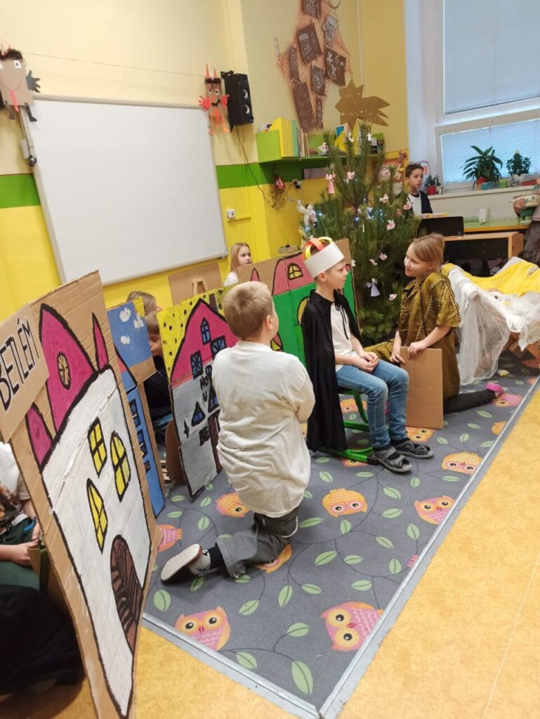Včera večer jsme potěšily své rodiče divadlem o narození Ježíše. Užily jsme si u toho plno legrace. Dnes jsme do našeho „třídního divadla“ pozvaly ještě prvňáčky, druháky, třeťáky a 7.A. Je bezva si připomínat, proč Vánoce slavíme.