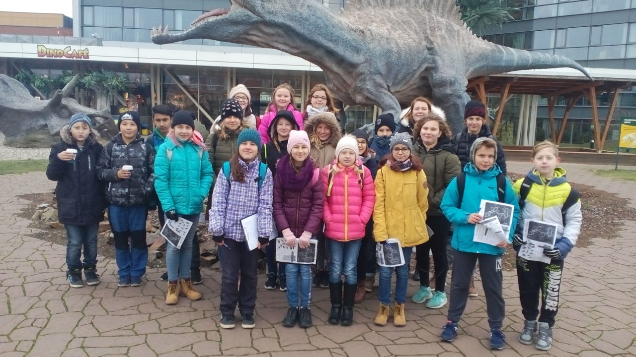 Dne 20.11. 2018 se třídy 6.A a 6.B zúčastnily exkurze do Dinoparku v Praze. Sešli jsme se před školou a do Prahy jeli vlakem. Dinopark nás sice přivítal mrazivým počasím, ale to nás neodradilo od plnění pracovních listů, které žáci dostali. Prozkoumali jsme celý park, ve kterém se dinosauři pohybují a řvou a vypadají opravdu jako ve skutečnosti. Děti plnily všechny zadané úkoly velmi aktivně, za odměnu si mohly vyzkoušet virtuální prohlídku pravěkého ještěřího světa. Na závěr exkurze jsme navštívili 4D kino s doprovodným filmem k tématu. Děti si ještě koupily suvenýry a potom jsme se vydali směrem domů.