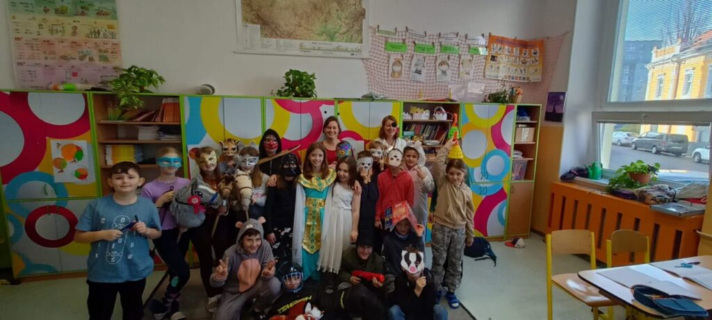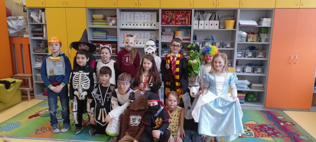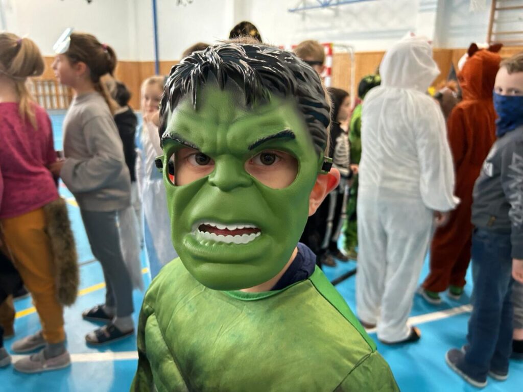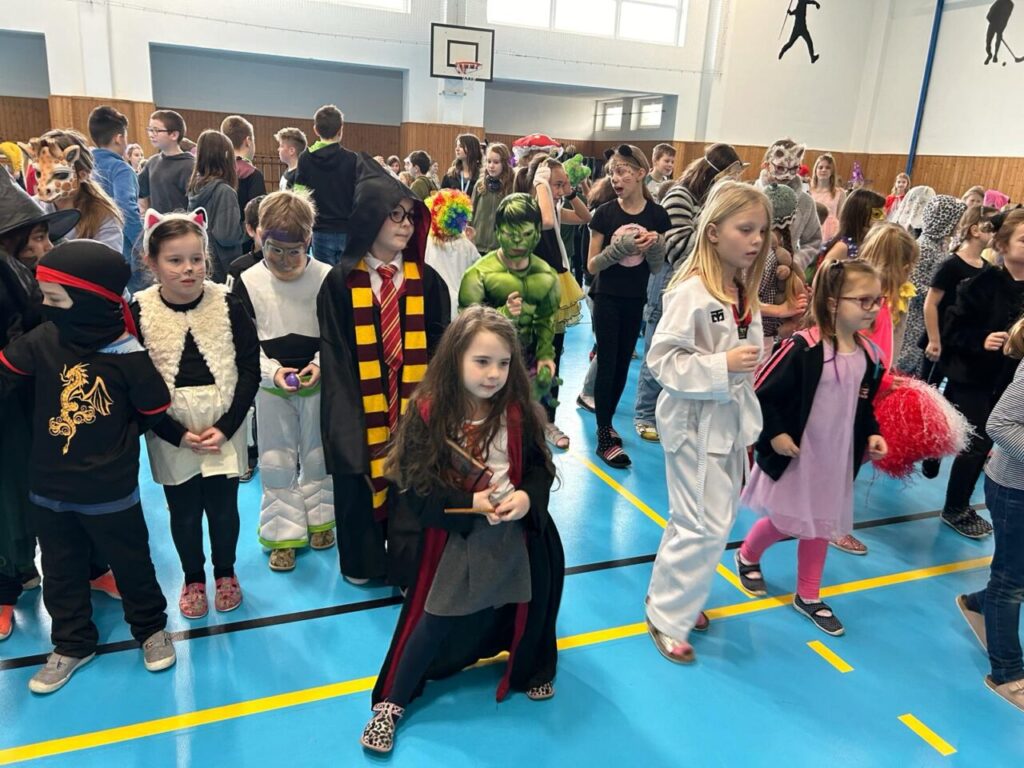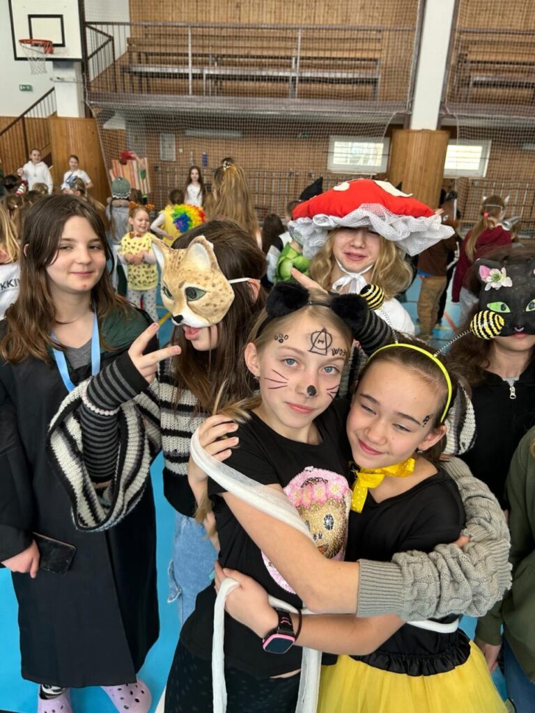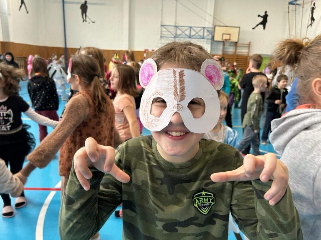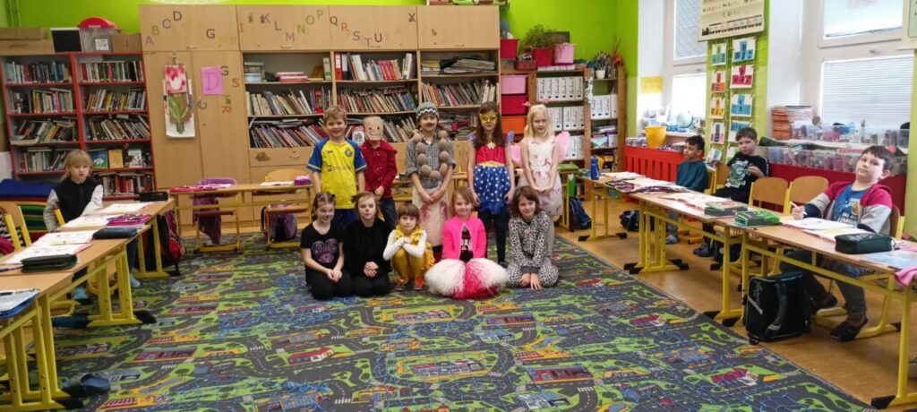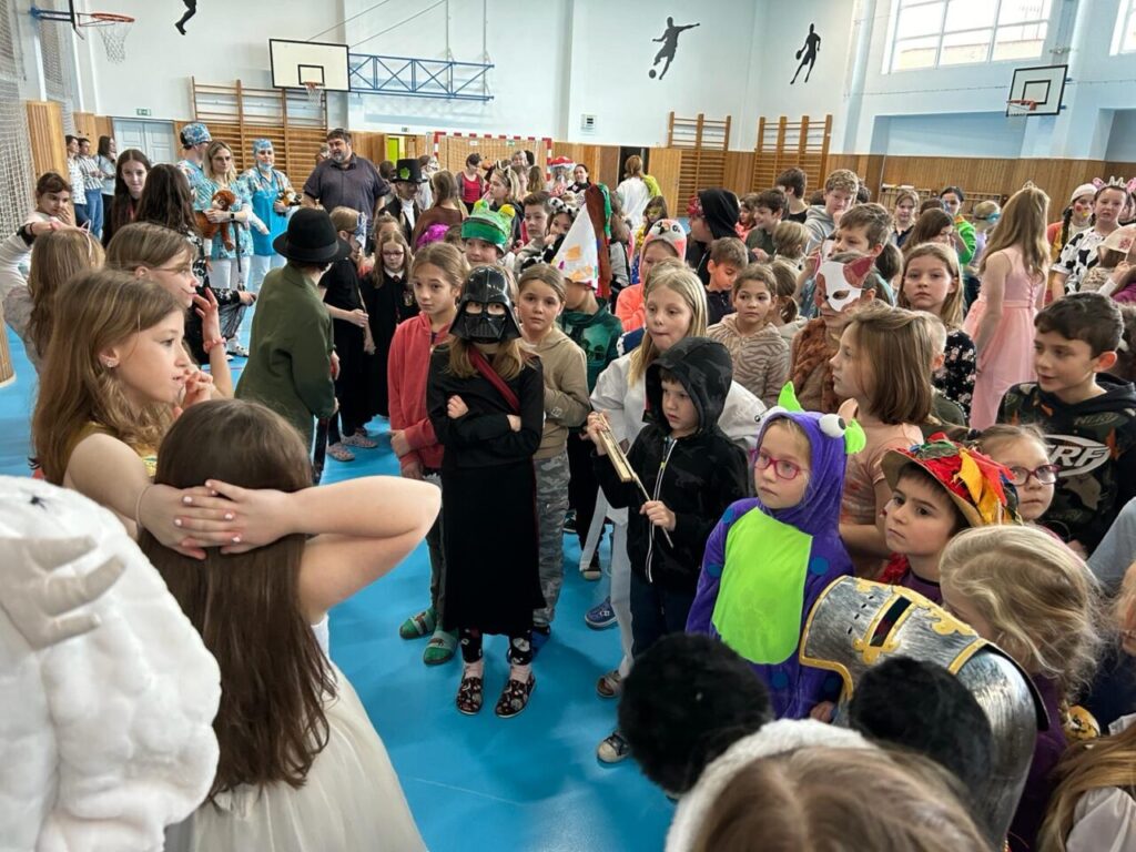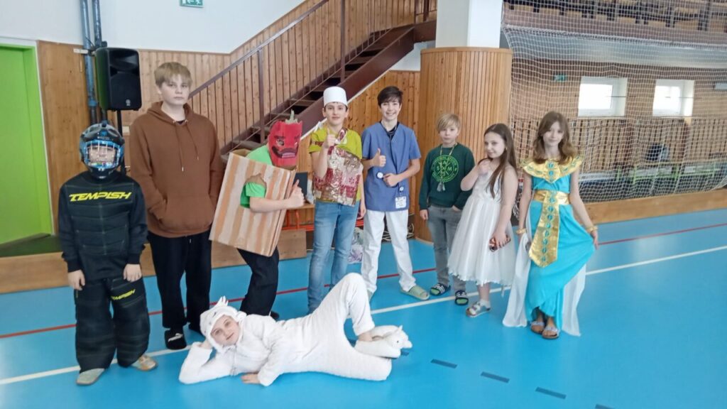 Školní parlament vyhlásil Masopustní úterý. A tak o velké přestávce byla plná tělocvična. Nejprve prošel průvod nápaditých masek. Pak jsme si zatančili.