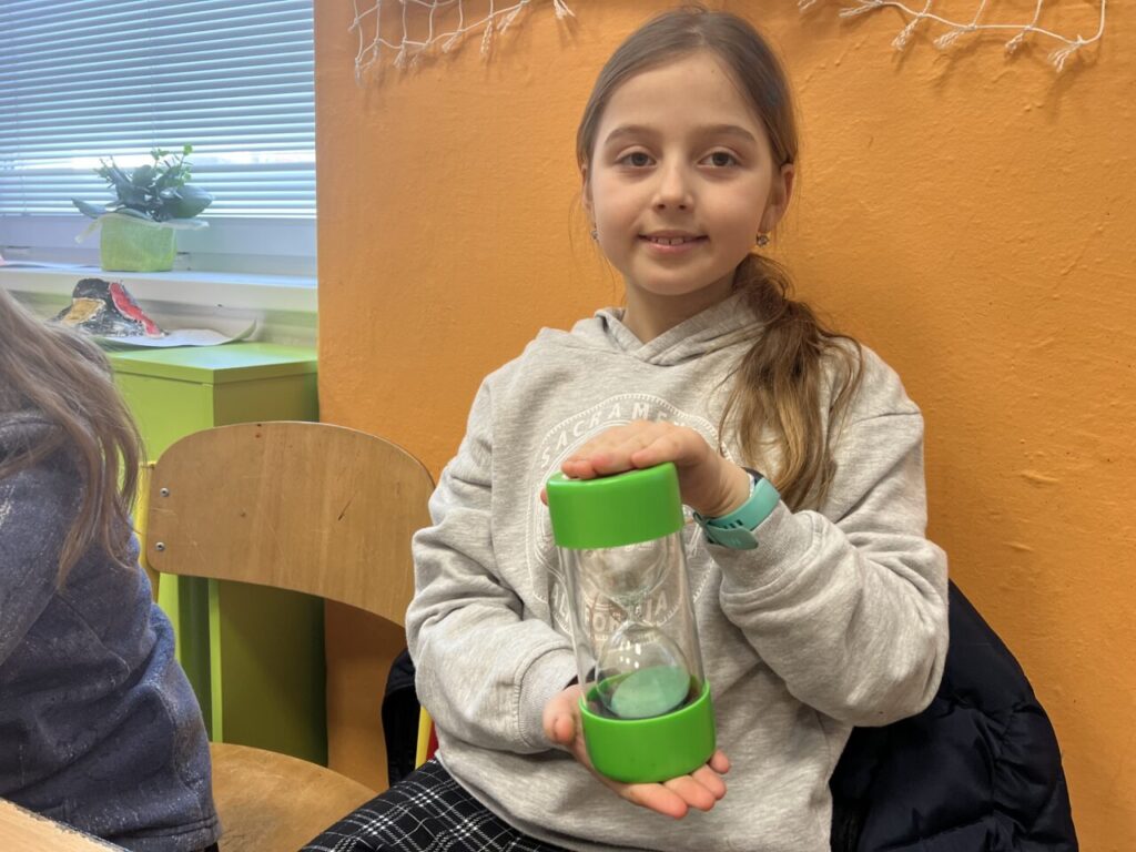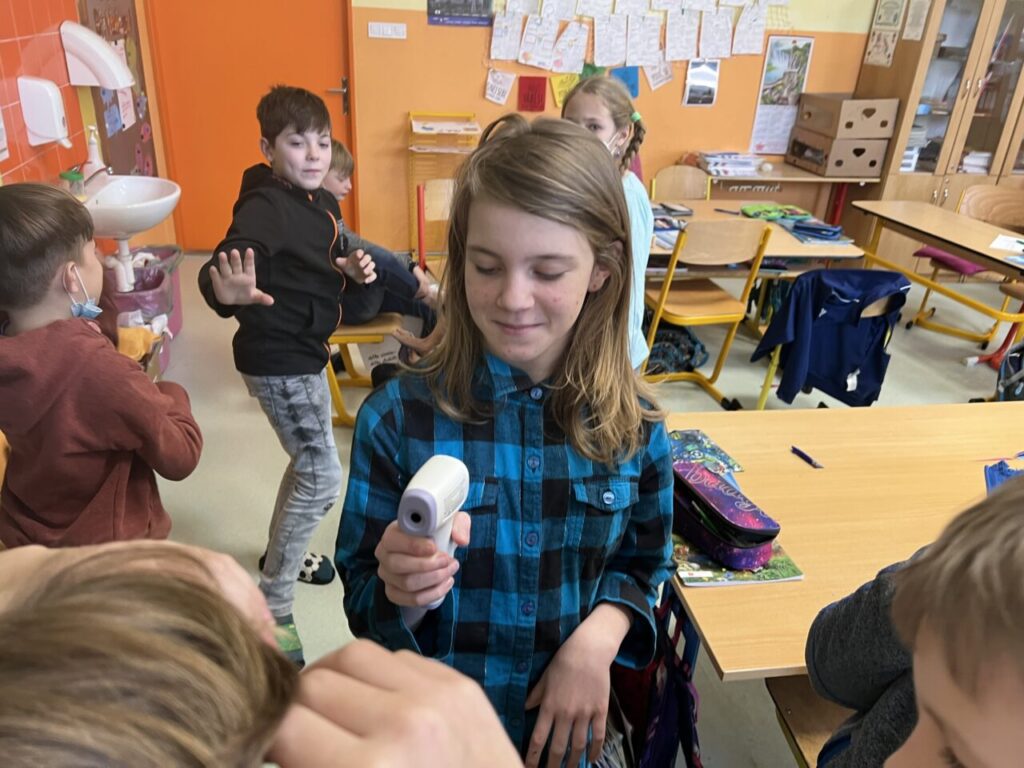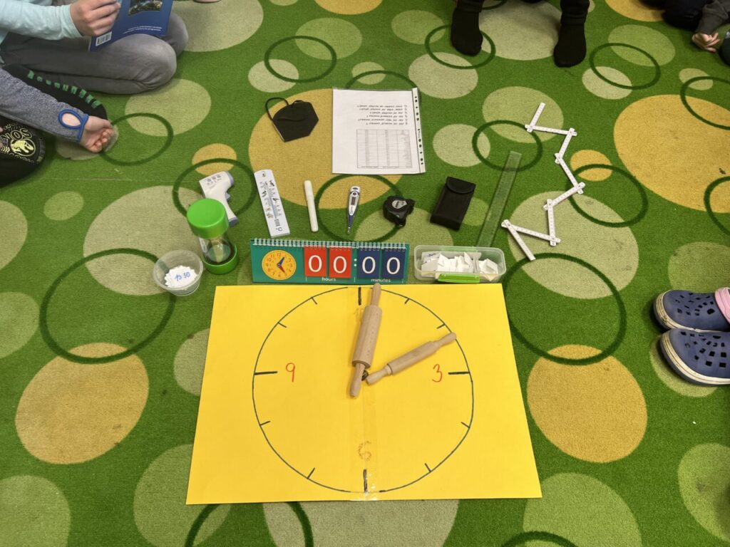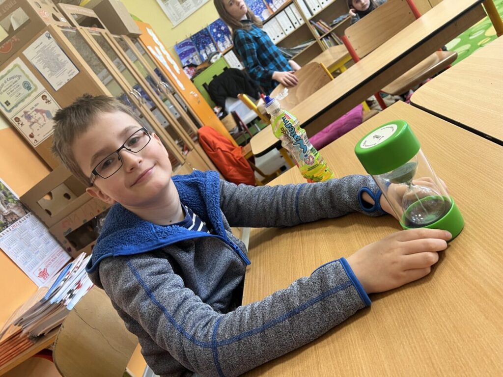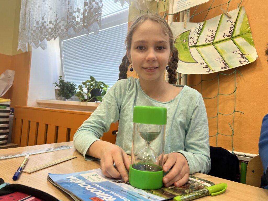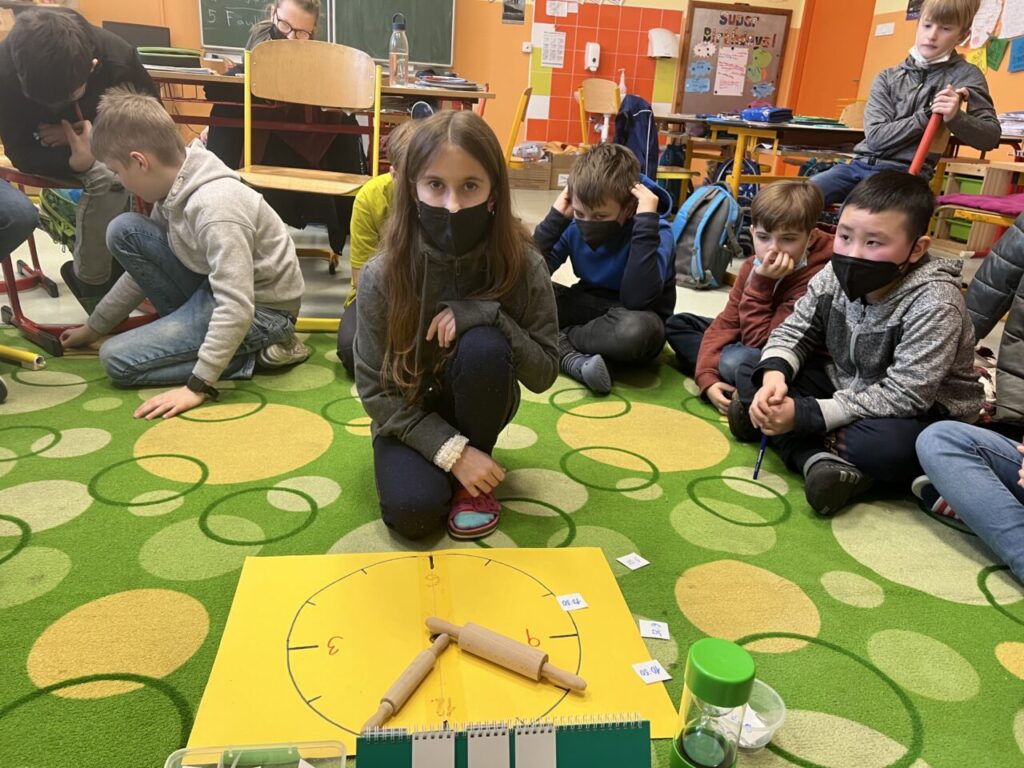 Více prostoru jsme také věnovali času, a to nejen na ciferníku analogových hodin, ale také pomocí přesýpacích hodin. Vyzkoušeli jsme si mluvit celou jednu minutu na dané téma (každý žák si vylosoval jiné). A nechybělo ani měření teploty.