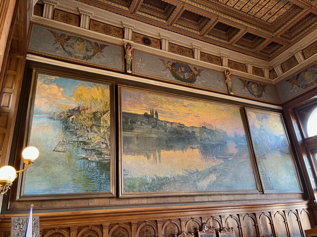 Navštívili jsme Městskou radnici v Kolíně s prohlídkou interiérů. Paní Tesařová doprovodila naši návštěvu vyprávěním o historii budovy, o výzdobě interiéru, o malíři Václavu Radimském, kolínském rodákovi, jehož velkorozměrné olejomalby zdobí reprezentační sál. Sešli jsme také do historického podzemí, kde jsou umístěny originály soch, které byly v minulosti v Kolíně rozmístěny. Velmi se nám vše líbilo. Budova radnice i její interiéry jsou nádherné.