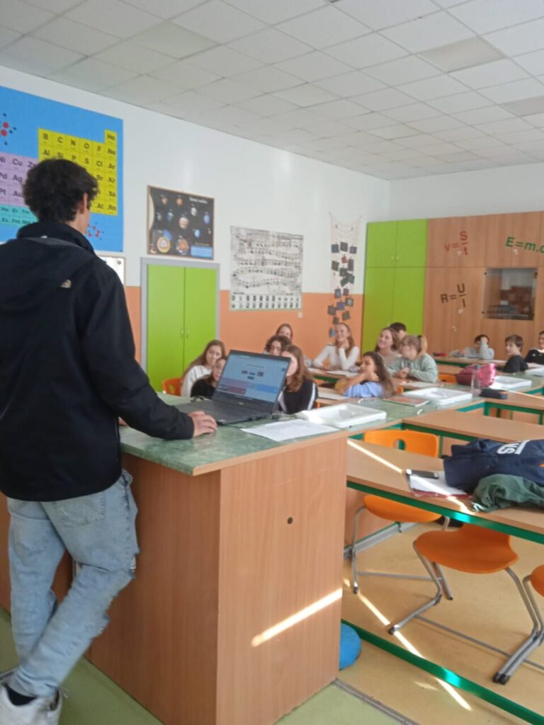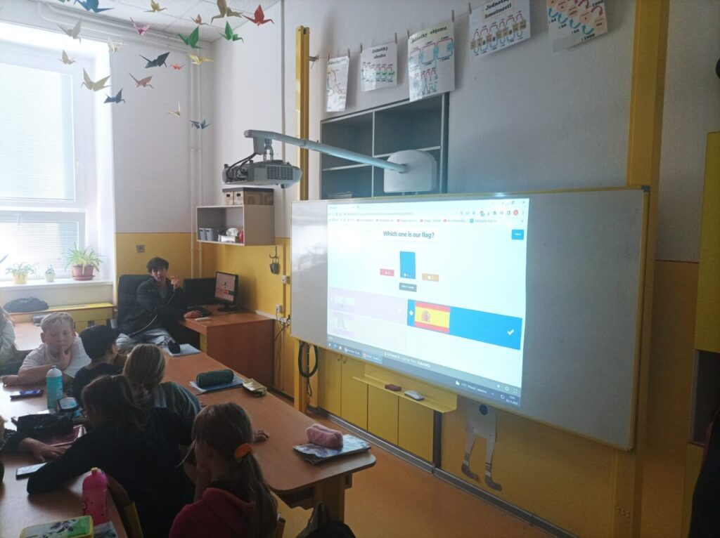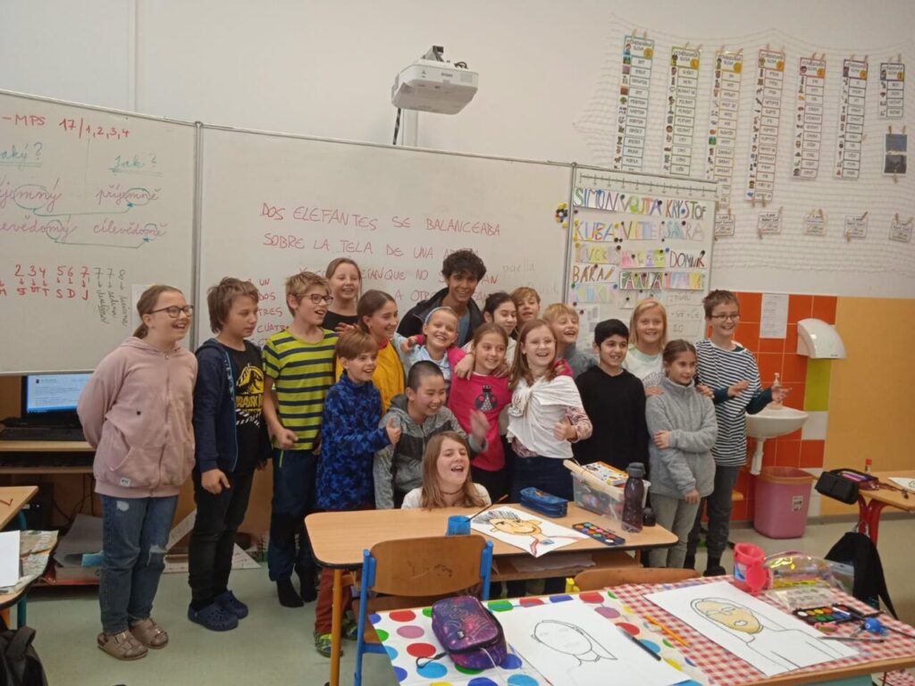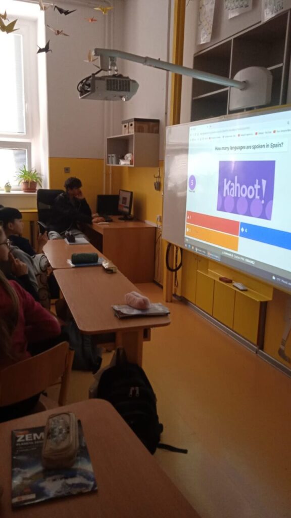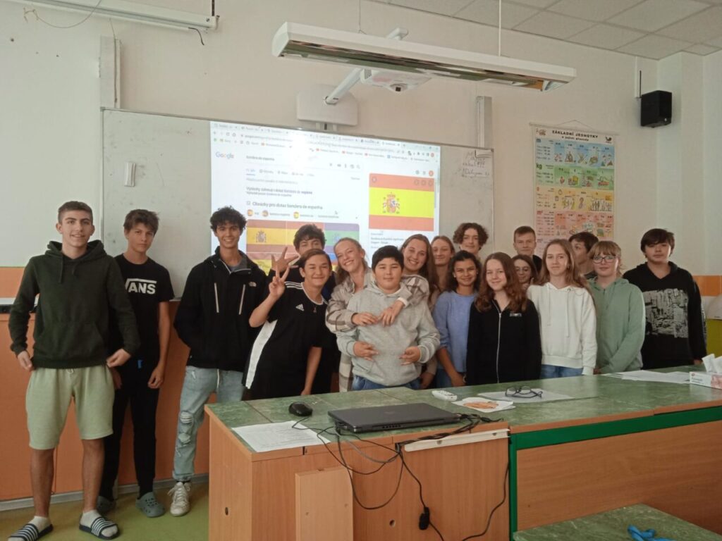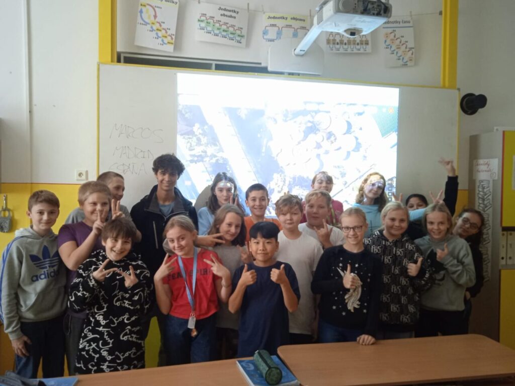 Ve čtvrtek 3. 11. jsme si povídali v pěti třídách se španělským studentem Marcosem. Připravil si Kahoot! s otázkami o své zemi,  malé děti naučil písničku, s většími probírali zájmy a sport 🙂