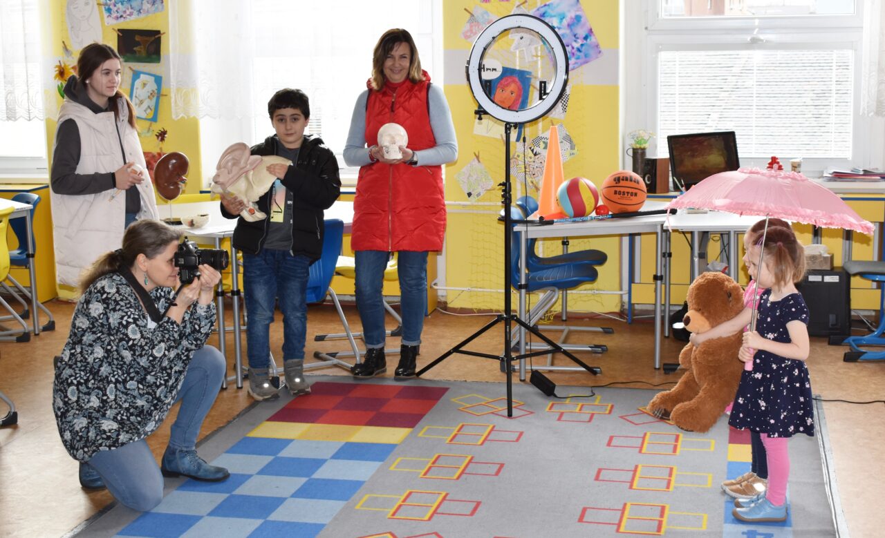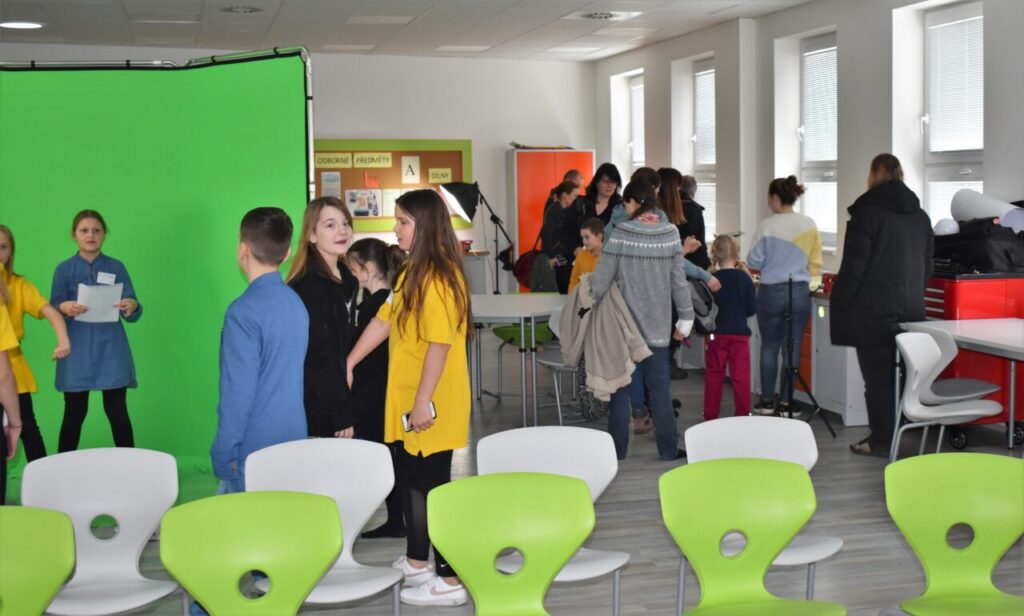 Dění celého odpoledne pečlivě monitorovaly a zachycovaly děti pod vedením svých pedagogů školní televize TV5.
