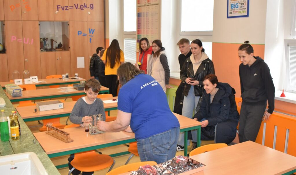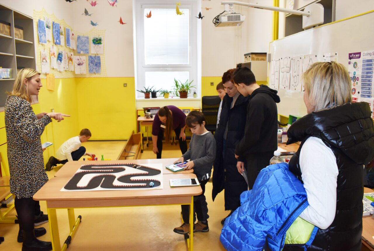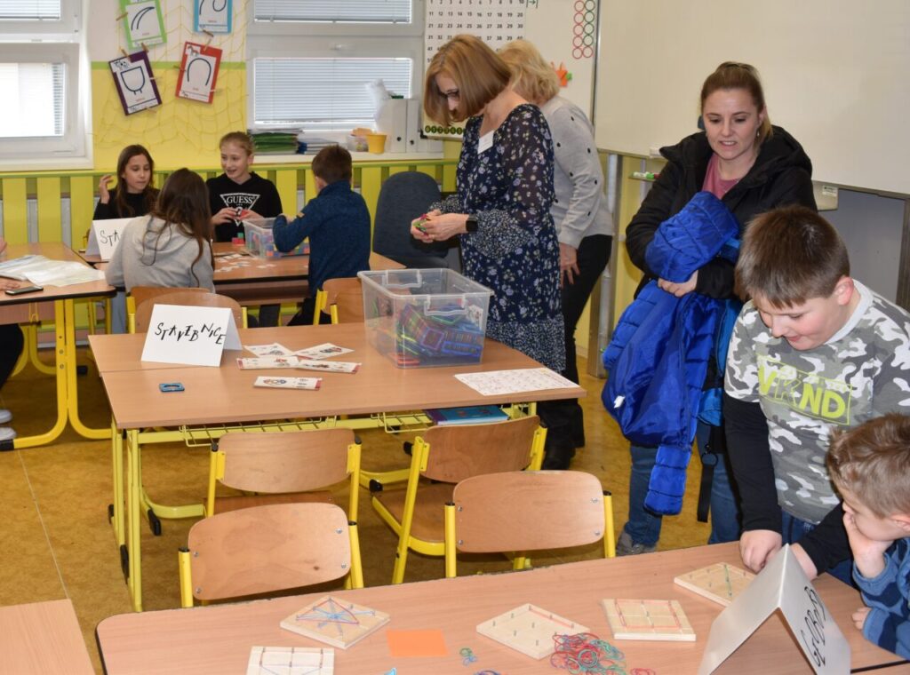 Důležitou roli průvodců převzali žáci; pomáhali v dílničkách s orientací v budově, účastníky zábavného odpoledne doprovázeli do jednotlivých učeben, vysvětlovali systém herního plánu s razítky. Snažili se, aby všichni soutěžící prošli připravenými stanovišti, vyzkoušeli si zajímavé aktivity, vytvořili zajímavé výrobky, seznámili se s moderními metodami výuky. Návštěvníci zažili na vlastní kůži přírodovědné pokusy, vyzkoušeli si robotické hračky, pomůcky a animační techniky. Navštívili fotografické a televizní studio školní TV5. Nechyběla ani hudební dílna a vystoupení nejmenších žáčků. Konečně se i potkali s „Hejného matematikou“, která je stále ještě opředena tajemstvím, občas je možná dokonce strašákem pro veřejnost. Přitom se jedná jen o novou metodu chápání matematiky, kdy sami žáci docházejí různými způsoby, cestami k řešení úloh.
