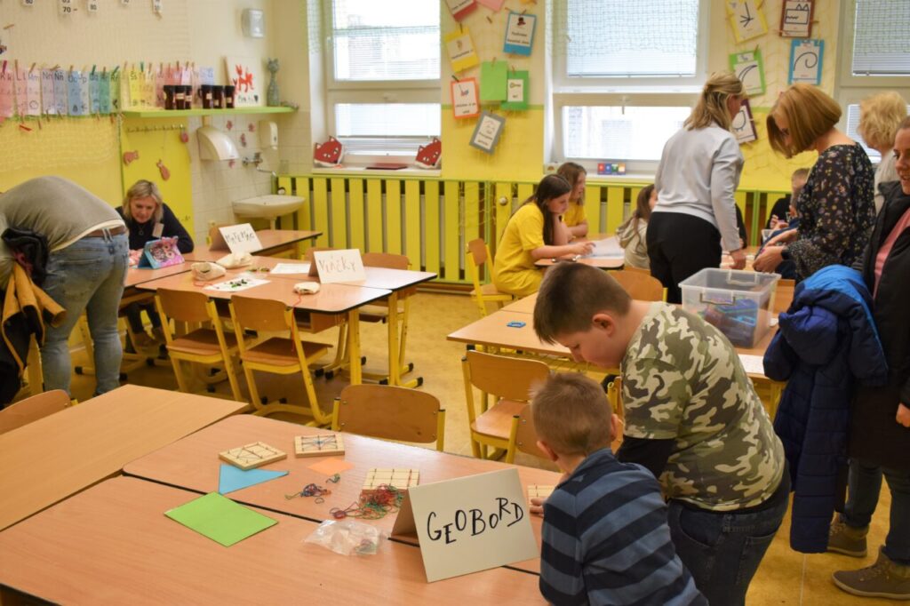 Mladí čtenáři ukázali své dovednosti při čtenářské lekci, představili oblíbené čtenářské kostky, které svými otázkami pomáhají k porozumění textu. Plno bylo nejen v dílničce interaktivní angličtiny, kde mohli budoucí žáčci vyzkoušet výukové programy, ale také si zachytat rybičky s anglickými slovíčky či si s paní učitelkami zahrát bingo. Některé aktivity (například v tělocvičně) zaujaly rodiče, zejména tatínky, natolik, že dokonce zapomněli na své děti.