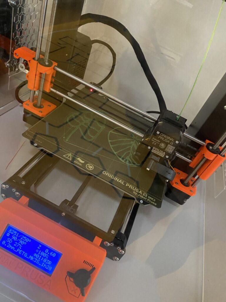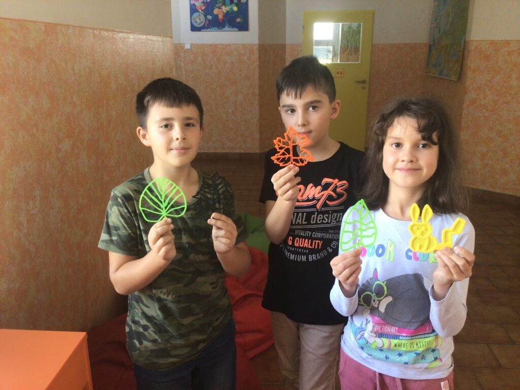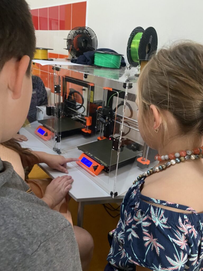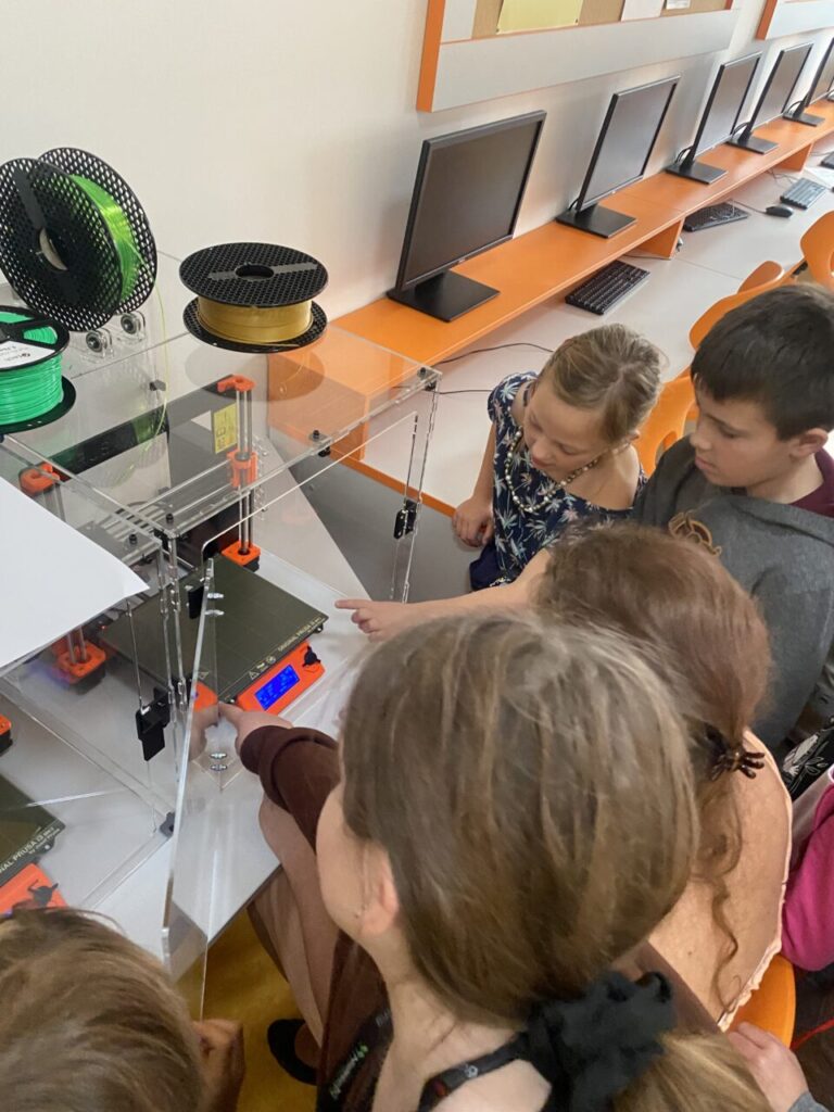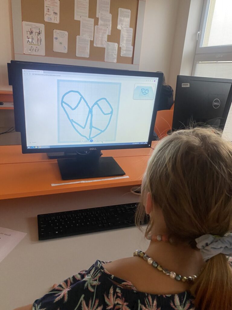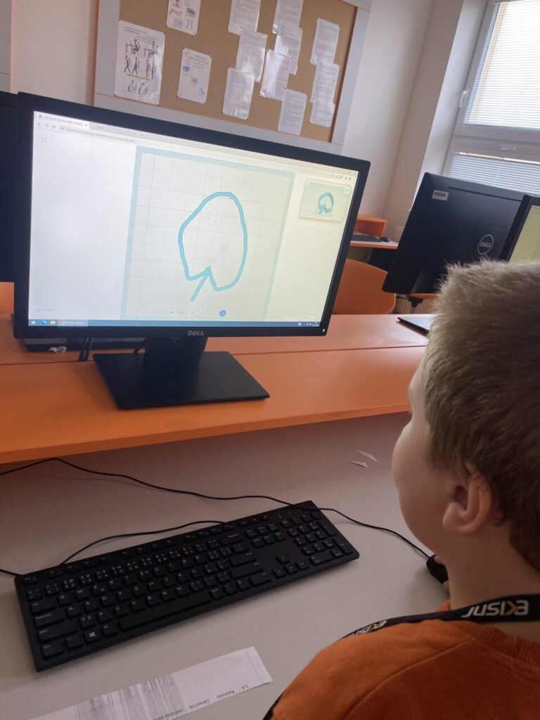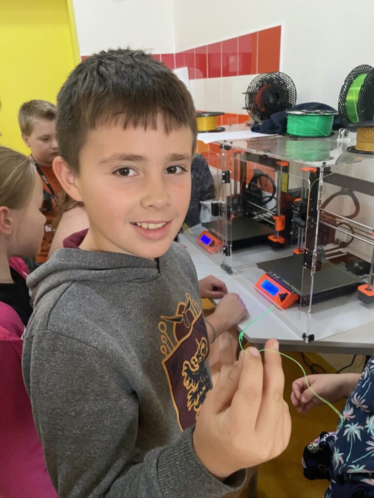 V programu Tinkercad žáčci malovali svůj list, který jsme potom převedli do tisknutelné podoby a vytiskli na 3D tiskárně. Zároveň se žáčci dozvěděli, jak 3D tiskárna funguje a viděli ji „v akci“.