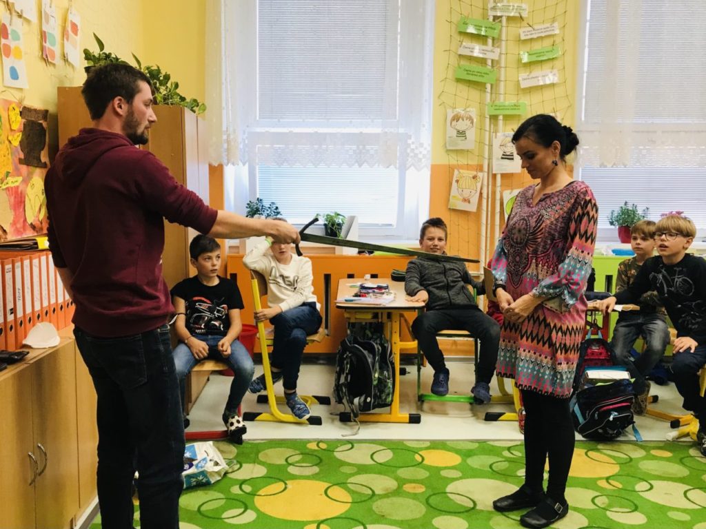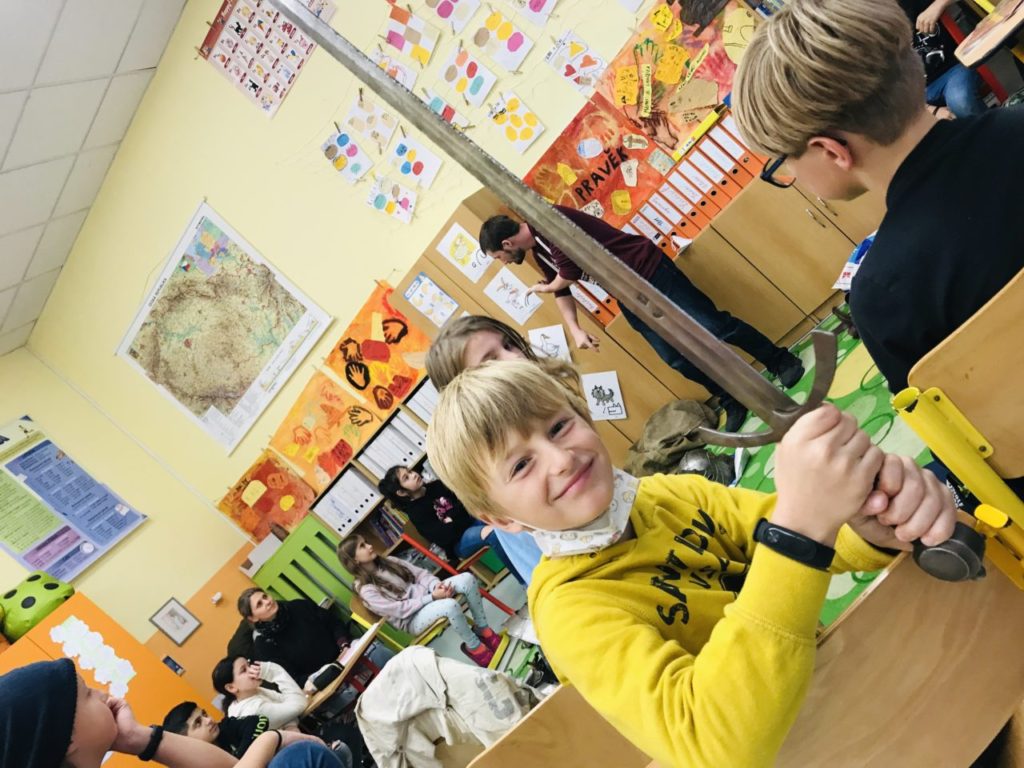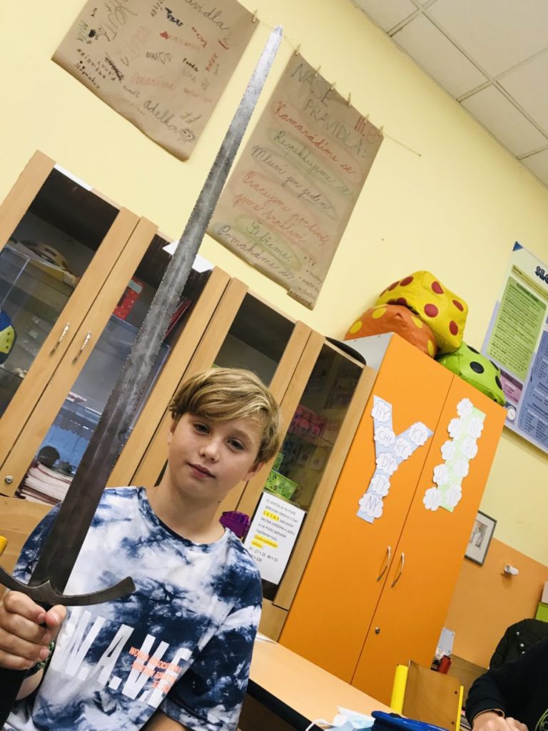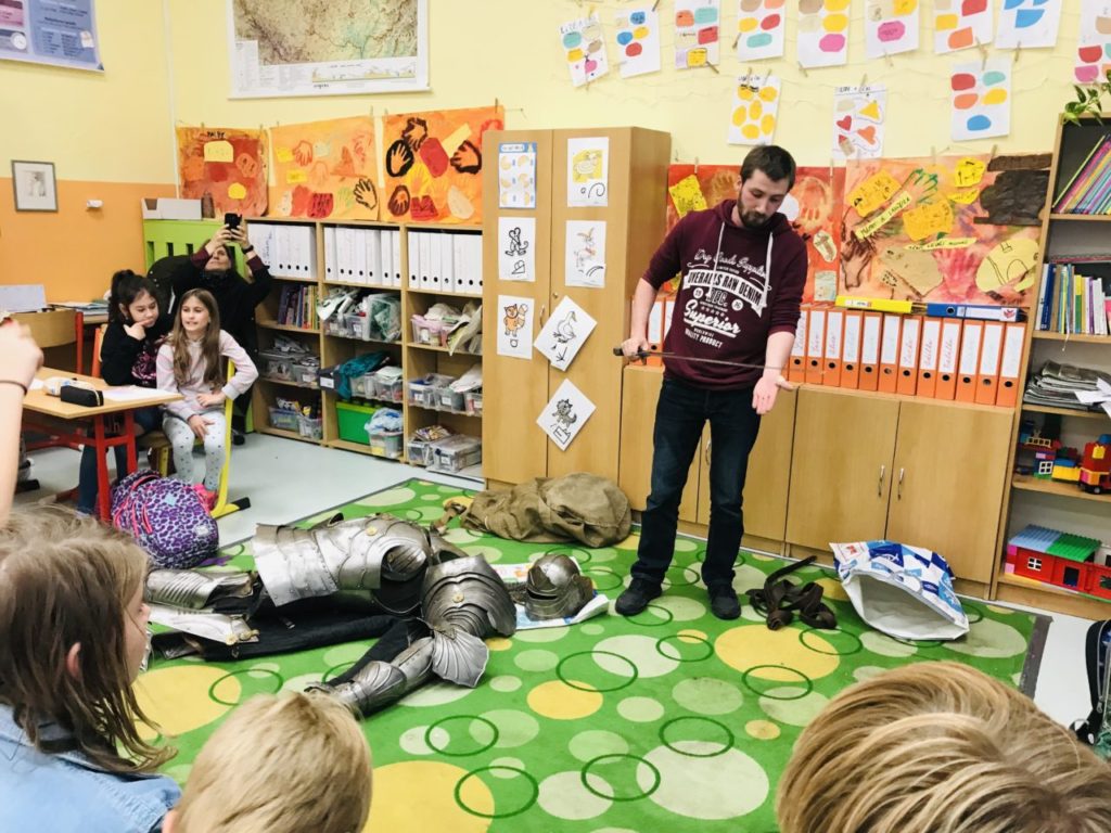 Kdo je rytíř, jak vypadal, co nosil, jaké musel mít schopnosti a čemu říkáme rytířské ctnosti? To a ještě mnohem více se dozvěděli žáci ze 4. B v rámci týdenního projektu. Pod záštitou bývalého žáka naší školy, Jaroslava Bureše, jsme absolvovali fantastickou přednášku na toto téma, za což moc děkujeme! Někteří z vás určitě tohoto pána dobře znají pod přízviskem „Rytíř Jára“, který na naší škole pravidelně pasuje děti na prvňáčky. Tento muž je ale také (mimo jiné) členem Colonia Nova a oboru rytířství se věnuje již od útlého věku – tedy o něm ví opravdu mnoho.