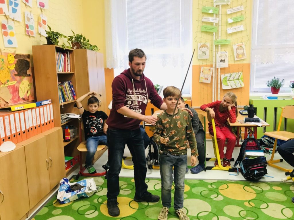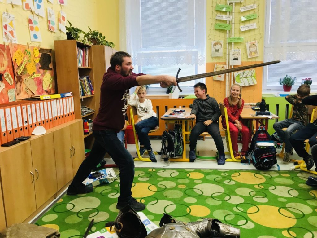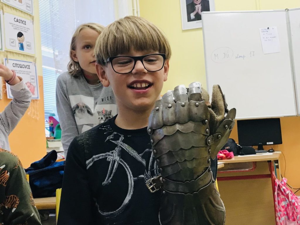 Děti byly doslova nadšené. Nejenže se dozvěděly mnoho zajímavostí, které se v běžných učebnicích či knihách jen tak nedozvíte, ale zároveň si na vlastní kůži mohly vyzkoušet rytířskou zbroj – potěžkat si v rukou meč, obléct si přilbu nebo rukavice, osahat kroužkovou košili. Řešili jsme rovněž mezilidské vztahy a jednotlivé rytířské ctnosti (co vše bylo zapotřebí, aby se muž mohl ve středověku stát rytířem) a jak probíhalo pasování na rytíře (od pážete až po rytíře -jakožto šlechtice).
