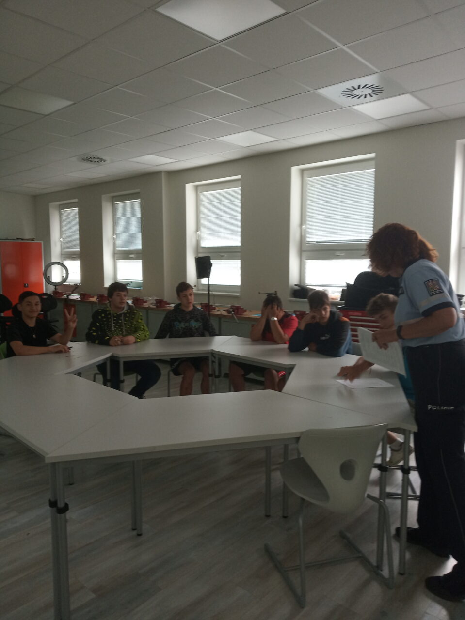 Žáci 8. A se dnes ve škole zúčastnili besedy Policie ČR v rámci programu Revolution train. Je to projekt zaměřený na protidrogovou prevenci. V rámci interaktivního věrohodného příběhu se žáci aktivně zapojili a uvědomovali si veškerá rizika spojená s užíváním omamných látek.