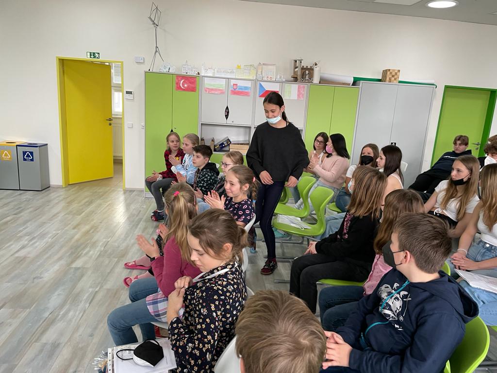 V samotném závěru vystoupili žáci 8. A se svým literárním pásmem básní ze sbírky „Jen jestli si nevymejšlíš“ od Shela Silversteina.