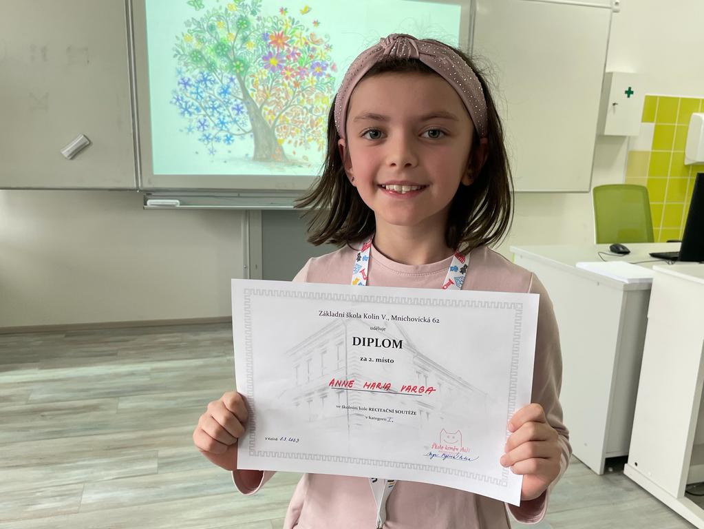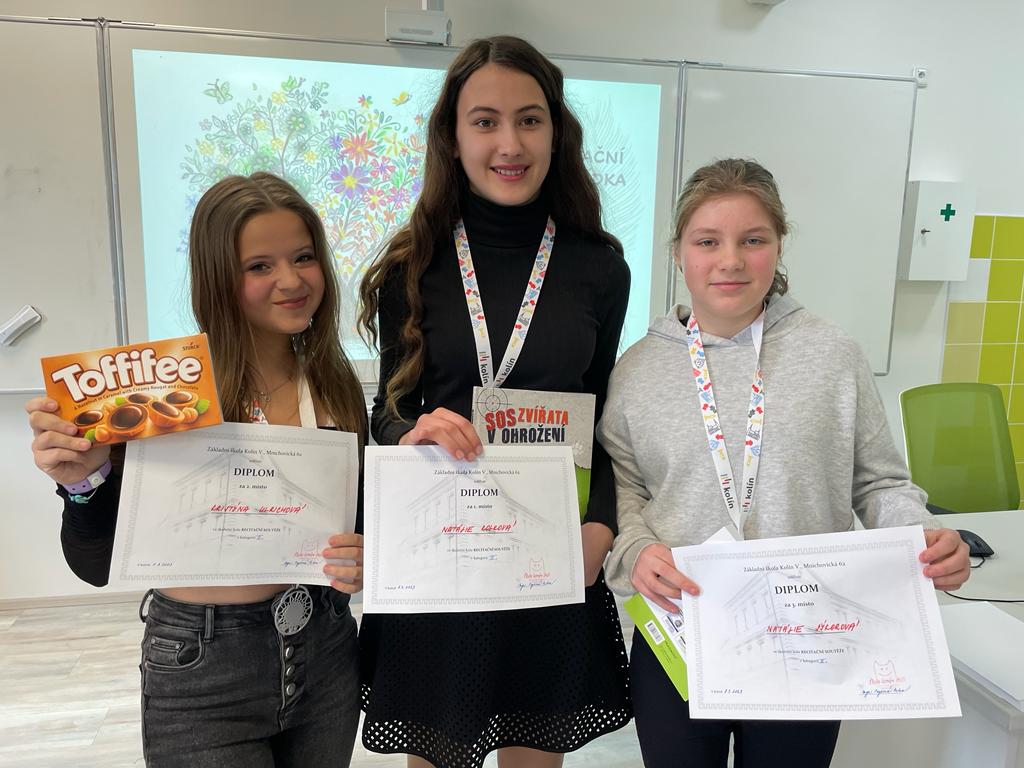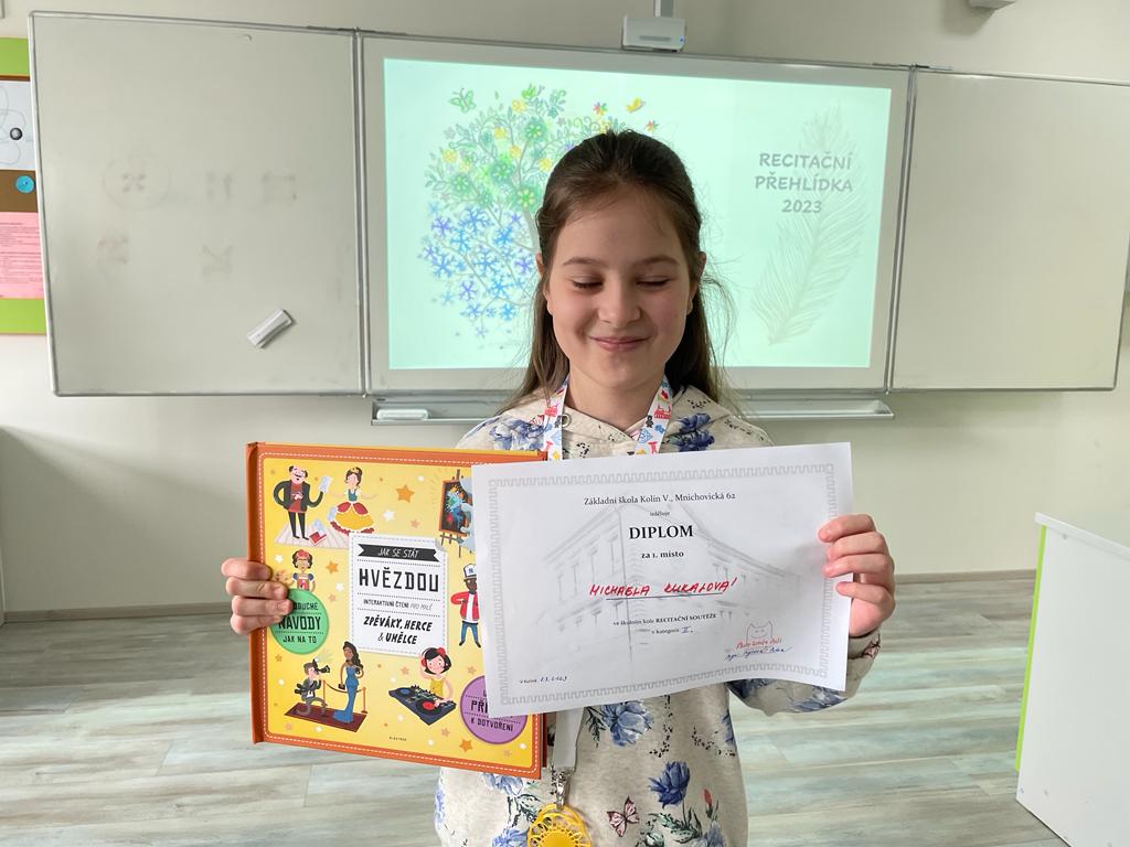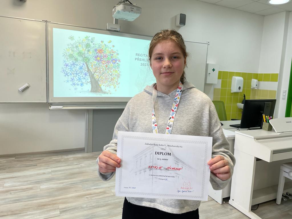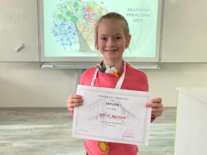 Zvláštní ocenění za výběr textu a jeho procítěné podání získala – Veronika Grumlová (9. B).