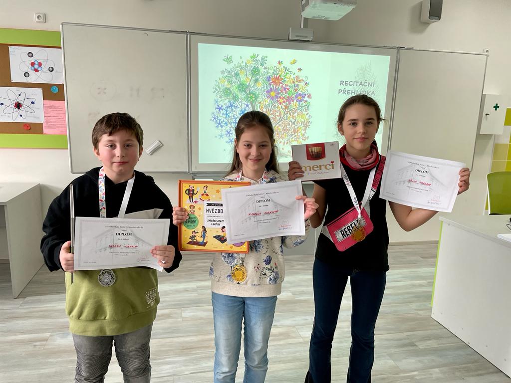 Ve středu 8. března se ti nejšikovnější a nejstatečnější recitátoři sešli a přednesli nám své básničky. Celkem si své síly změřilo 53 recitátorů. Ti nejúspěšnější si odnášeli odměny v podobě diplomů, medailí a drobných dárků. Porota to neměla vůbec jednoduché, děti byly moc šikovné.