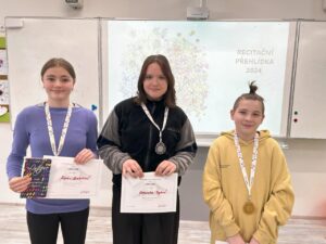 Ve středu 21. února se již potřetí uskutečnilo školní kolo v recitaci určené pro žáky I. a II. stupně za účasti 54 přednášejících. Sešli se ti nejšikovnější a nejstatečnější ze všech tříd z celé školy. Recitaci doprovázela příjemná atmosféra. Podle rozesmátých tváří dětí spolu s pochvalnými slovy zúčastněných posluchačů lze soudit, že se všem dopoledne s poezií velmi líbilo a v mnohém je obohatilo o kulturní zážitek z této uskutečněné akce.
