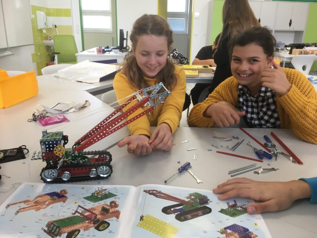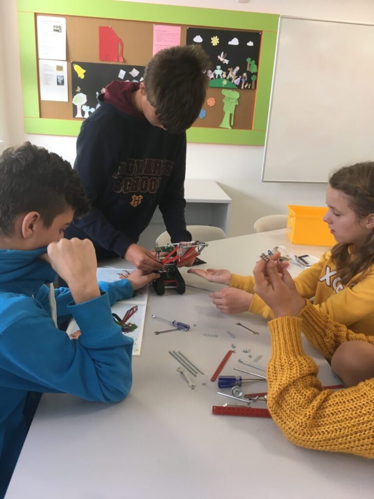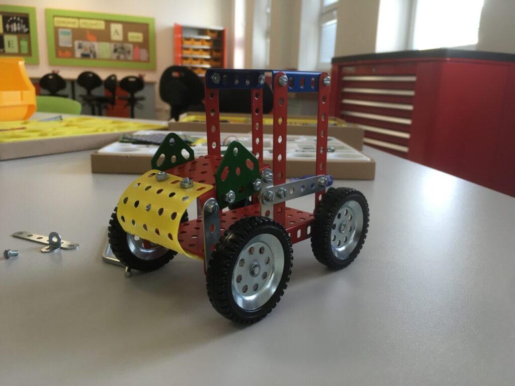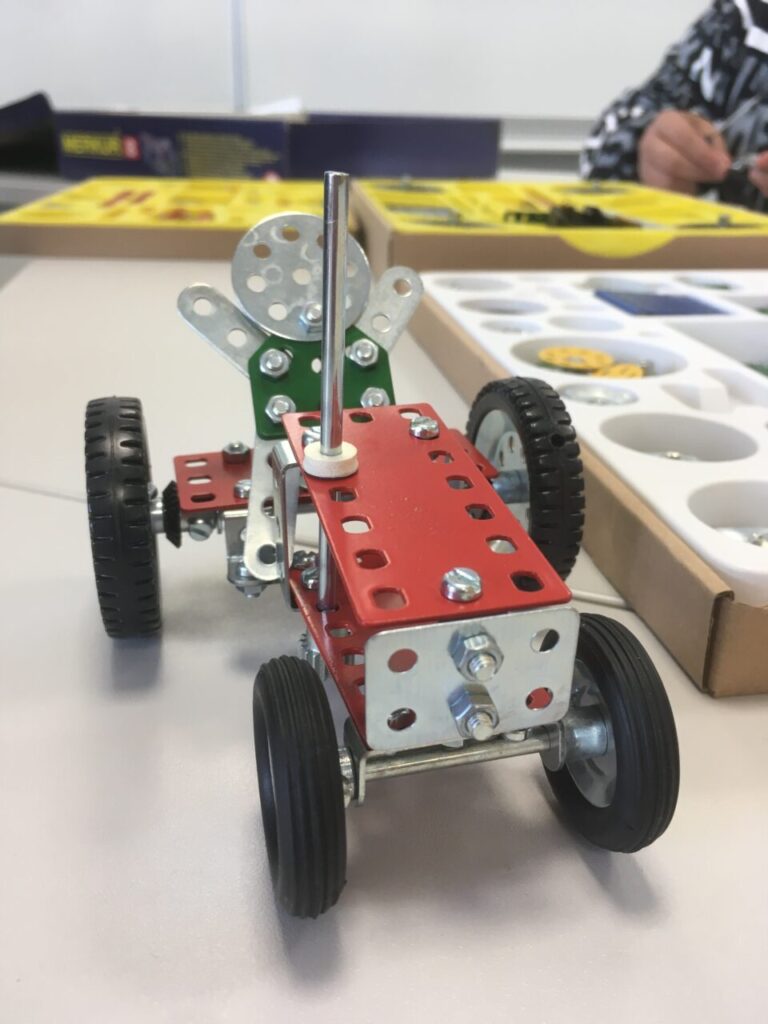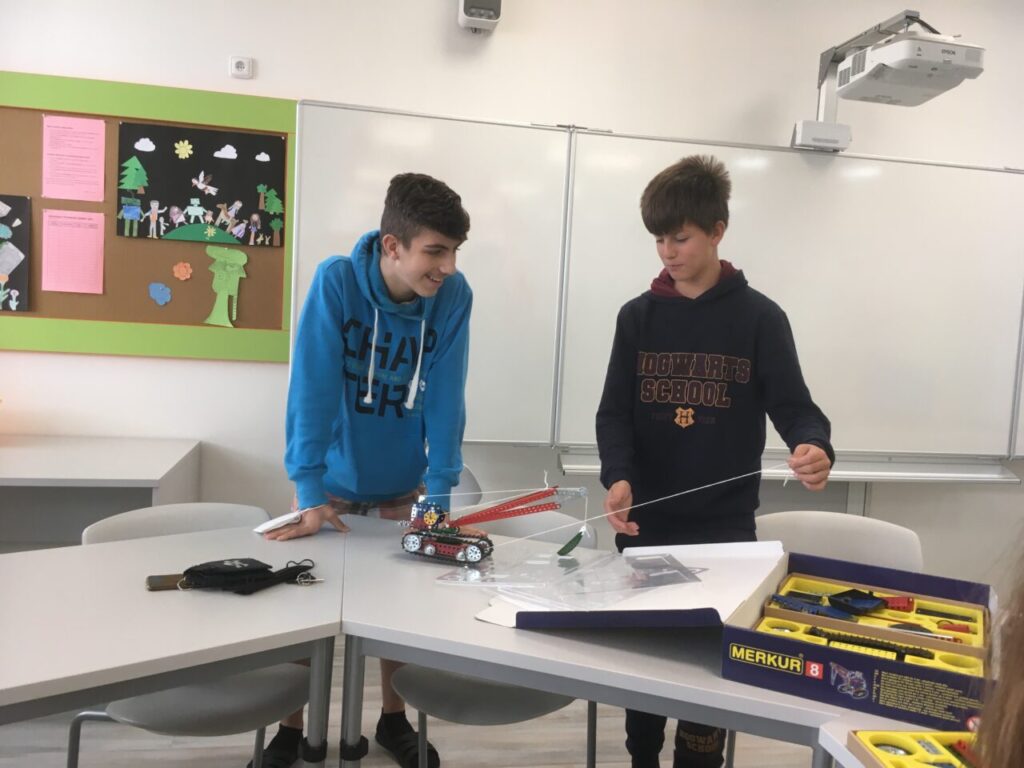 Žáci 7. A se v předmětu Člověk a svět práce věnovali stavebnici MERKUR. V minulém týdnu dokončili několikahodinový projekt. Konstruovali podle plánu a ačkoliv zpočátku někteří válčili s drobnými šroubky a matičkami, které se neustále uvolňovaly, nakonec stavebnici Merkur pokořili všichni.