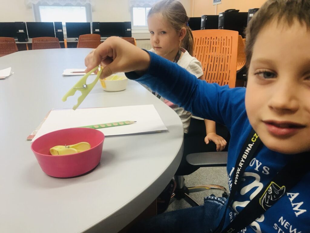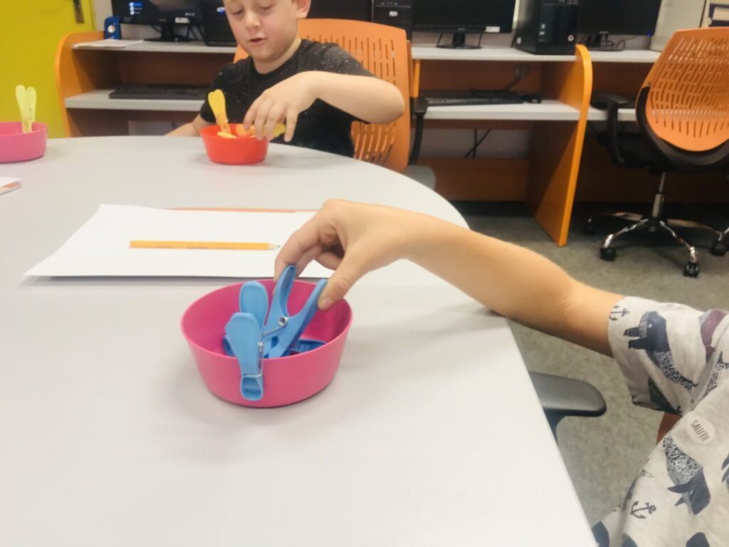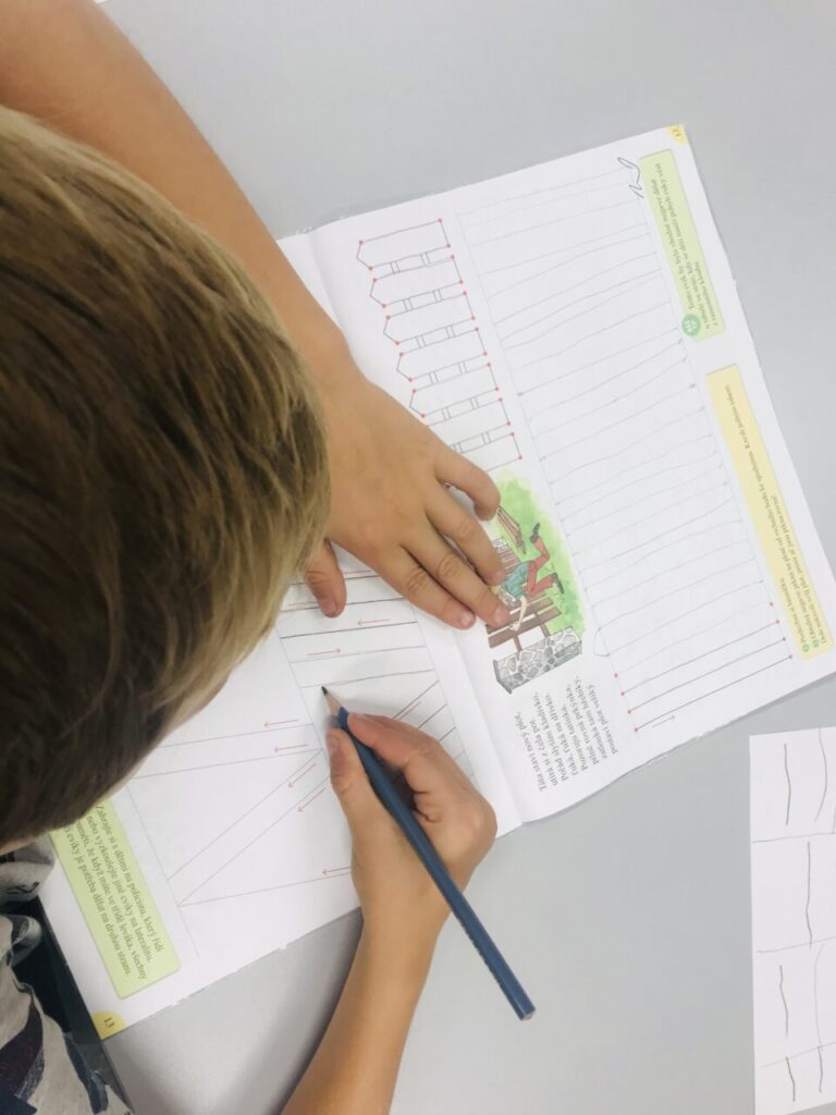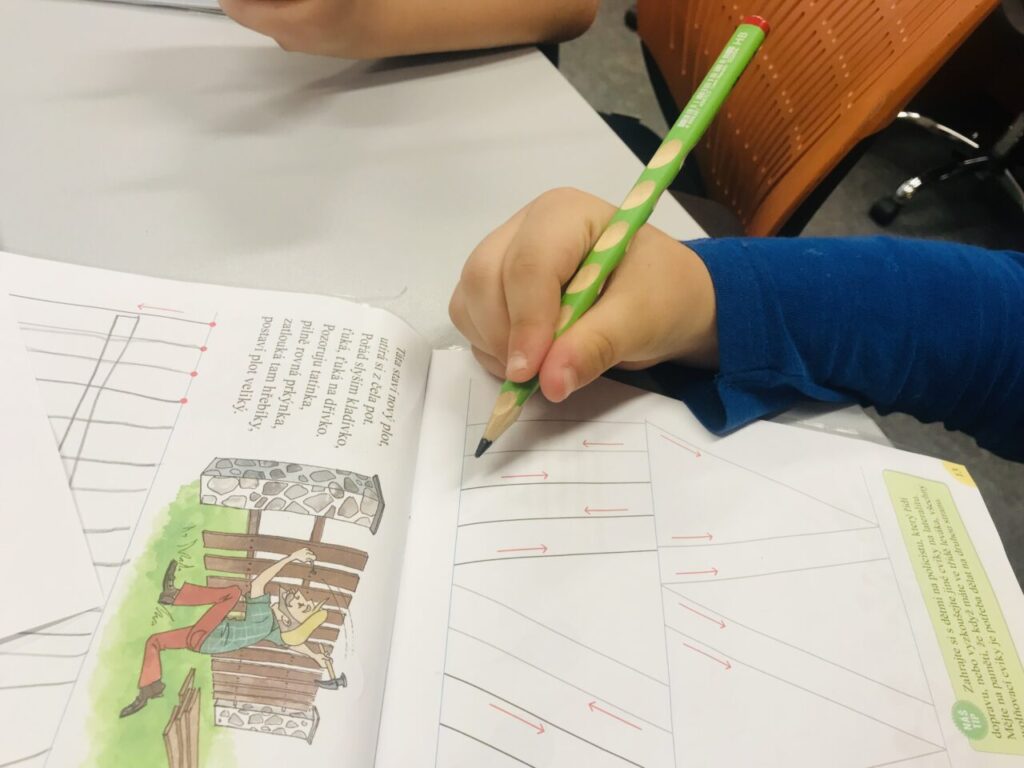 V 1. ročníku žáci pracovali s válečky s úchyty a s kolíčky. Právě tyto dvě aktivity jsou nejlepším prostředkem pro trénování špetkového úchopu (palec, ukazováček, prostředníček). Trénovat tyto tři prstíky je nezbytné pro správné držení tužky. Mělo by tomu tak být nejen v prostředí školy, ale zejména pak doma. Pakliže totiž dítě doma dostatečně špetkový úchop netrénuje, může si pak špatné držení tužky nést až do dospělosti.