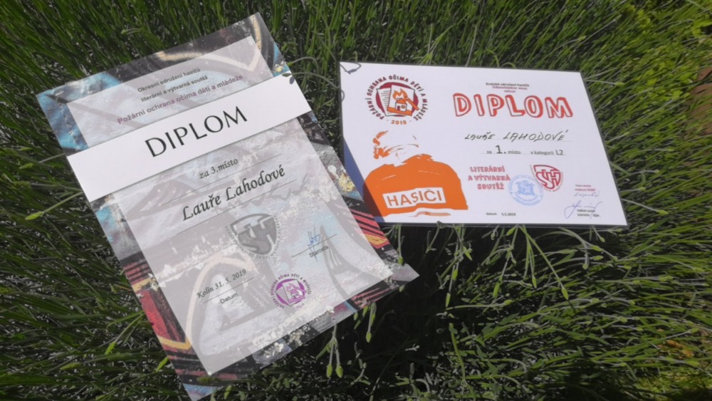 V literární části soutěže Požární ochrana očima dětí jsou naši žáci každoročně úspěšní. Letos jsme ve druhé kategorii v okresním kole opět obsadili první místo, vybojovala ho Lucie Tvrdíková ze 7. A. Novinkou pro nás ale byl úžasný úspěch v kole krajském. V tom totiž zvítězila Laura Lahodová ze 7. B, která zároveň v okresním kole získala místo 3. Oběma žákyním gratulujeme a přejeme mnoho dalších úspěchů.