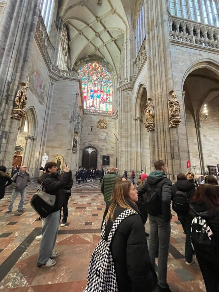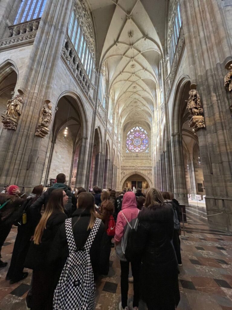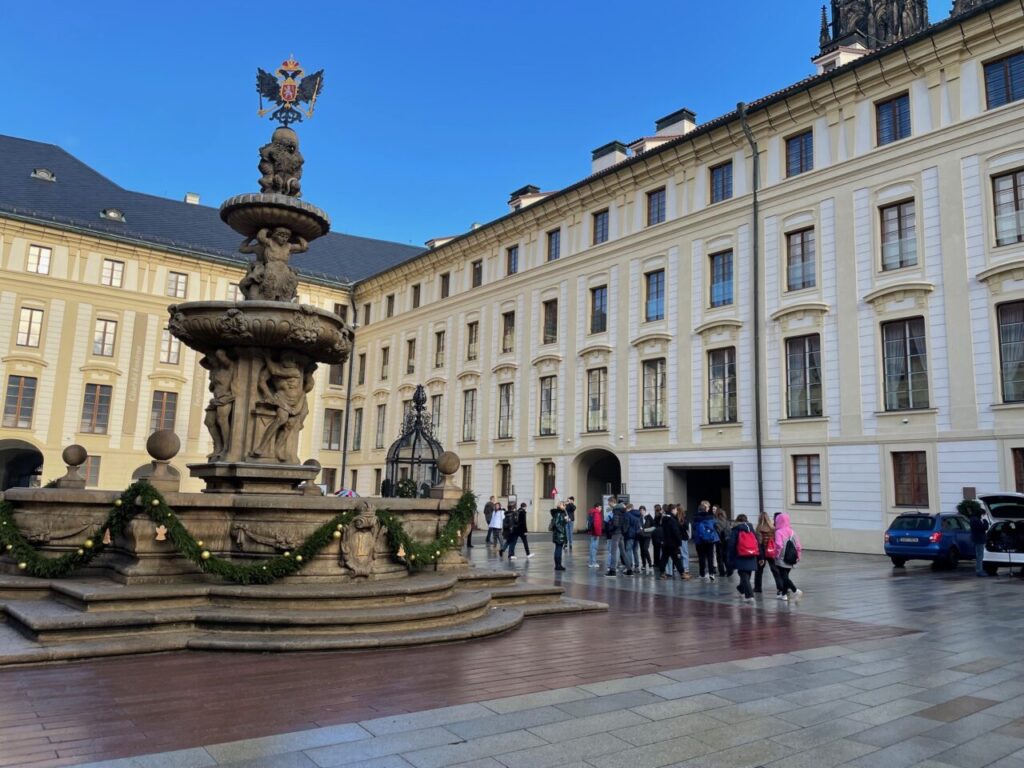 Žáci devátých ročníků a žáci 8. B navštívili dne 13. 12. vánočně vyzdobenou Prahu. Cílem naší výpravy byla návštěva Pražského hradu se zkušenou paní průvodkyní, která nám ke všemu, co jsme viděli, podala hezký výklad. Prošli jsme interiéry katedrály sv. Víta s hroby českých králů a svatých, Starý královský palác s Vladislavským sálem, baziliku sv. Jiří s hrobem sv. Ludmily a Zlatou uličku s domky řemeslníků, hradbami a věžemi (Bílou věží a Daliborkou). Po skončení programu jsme ještě zavítali do Palladia na zasloužené občerstvení a nákupy vánočních dárků.