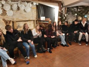 Žáci 9. A a 9. B na vánočním výletě v Praze. Návštěva Betlémské kaple a Staroměstské náměstí.