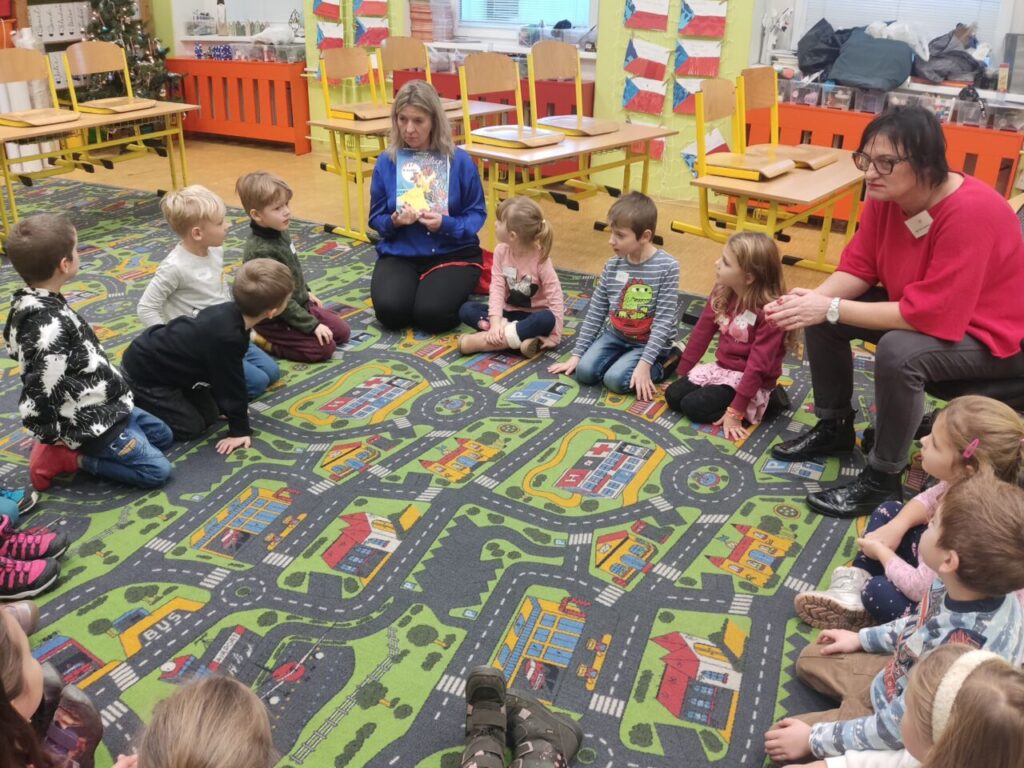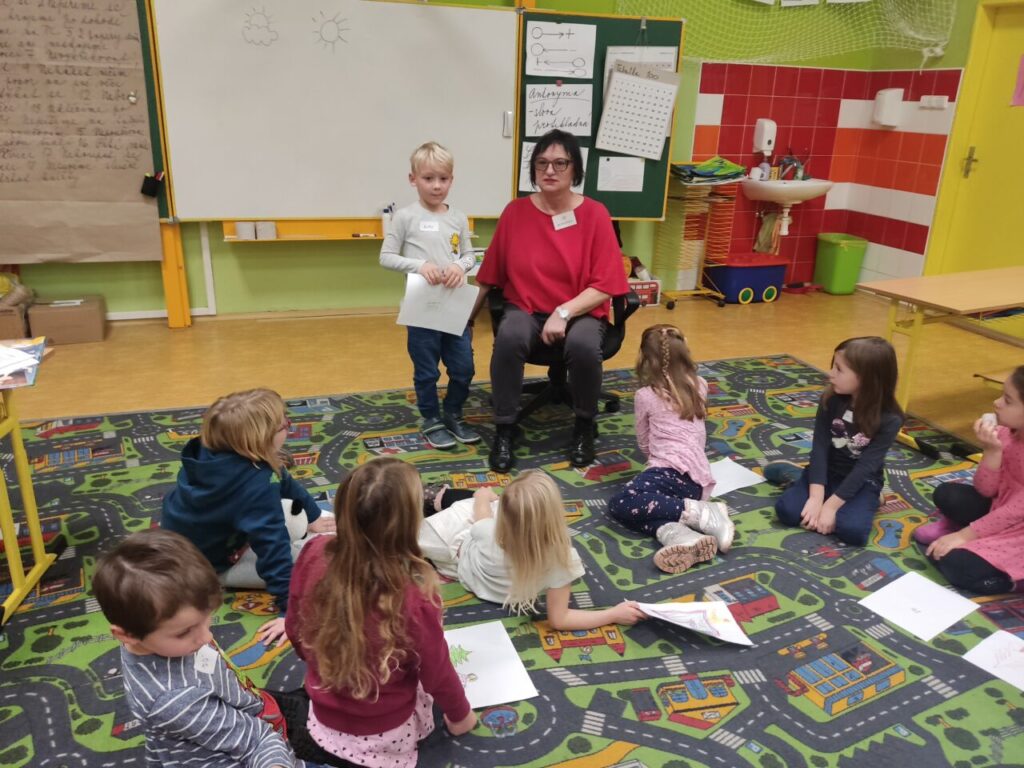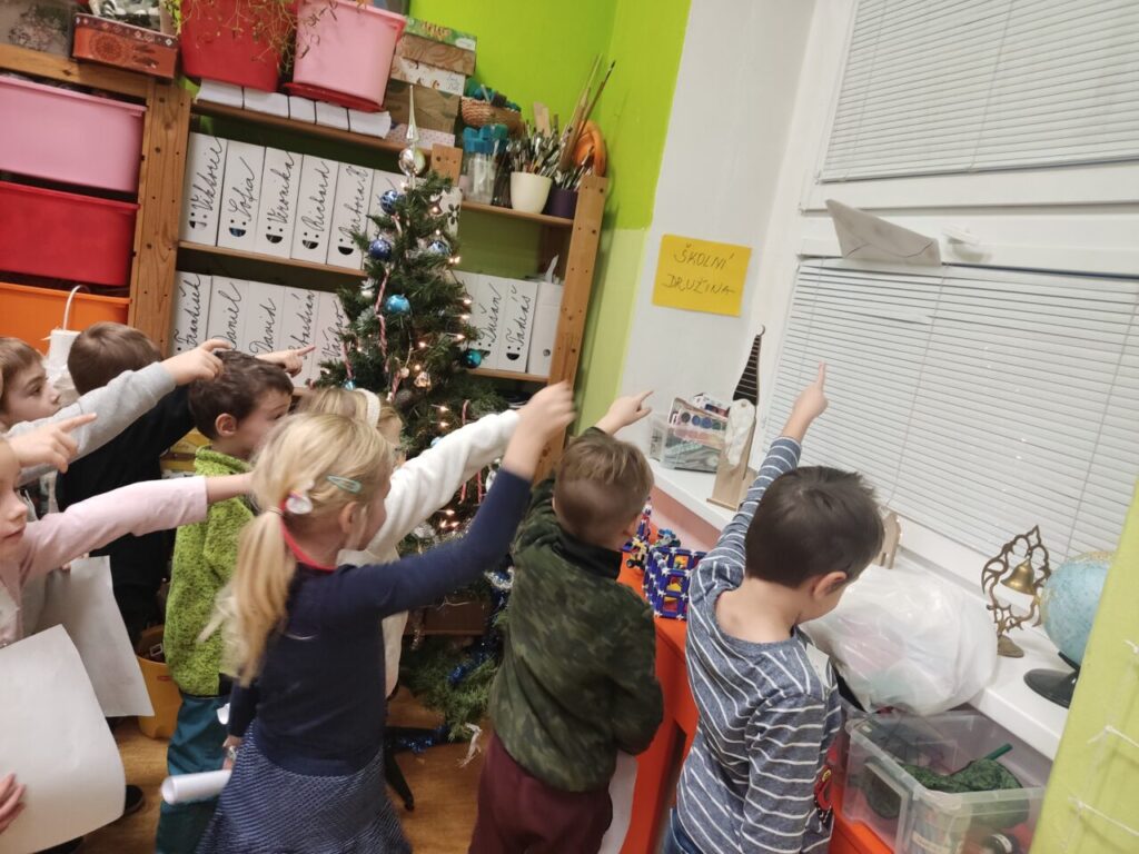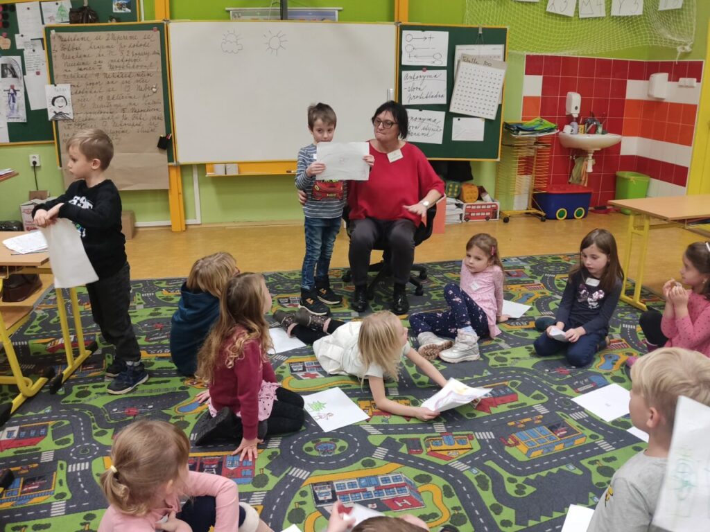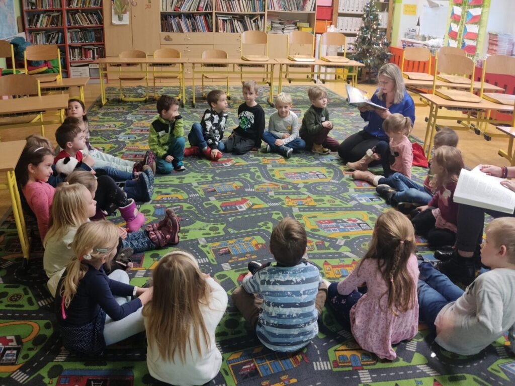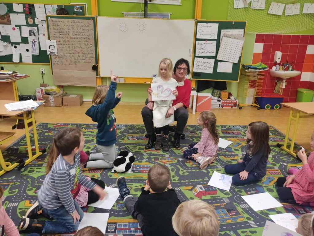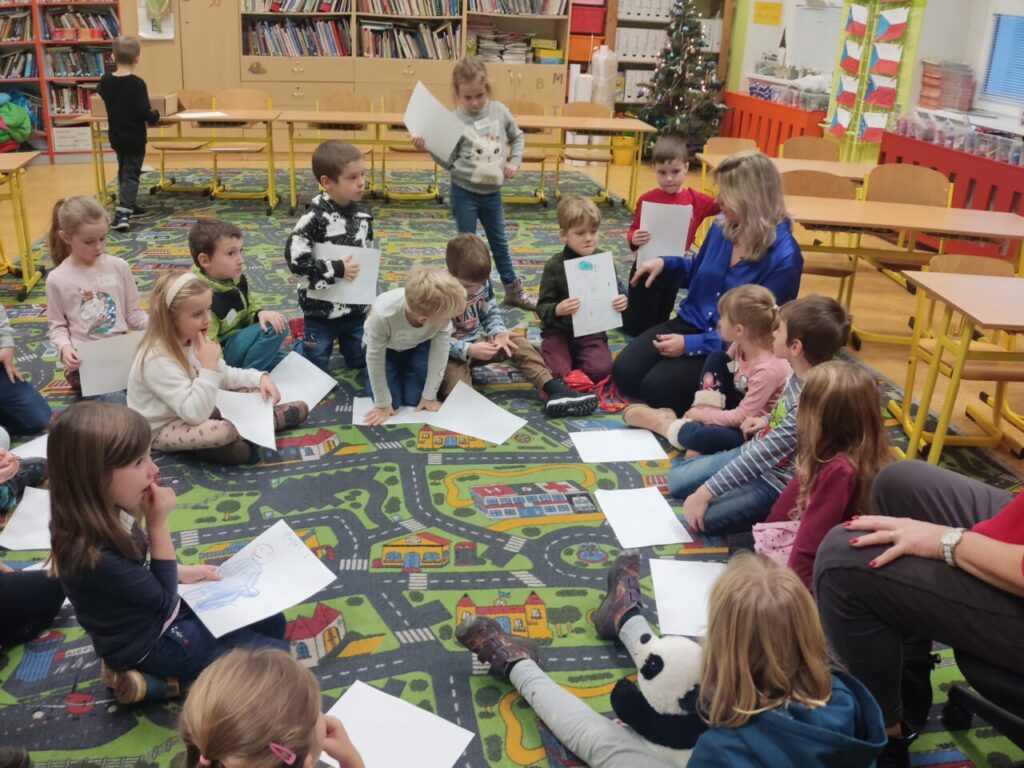 V předvánočním čase děti vyslechly poutavý příběh Jitky Molavcové O sněhu a Ježíškovi. Vyzkoušely čtení s předvídáním, dramatizaci, vyjádření děje pohybem, pantomimu. Nakreslily svá vánoční přání. Hledaly dopis Ježíškovi a přemýšlely, jak je důležité myslet i na ostatní.