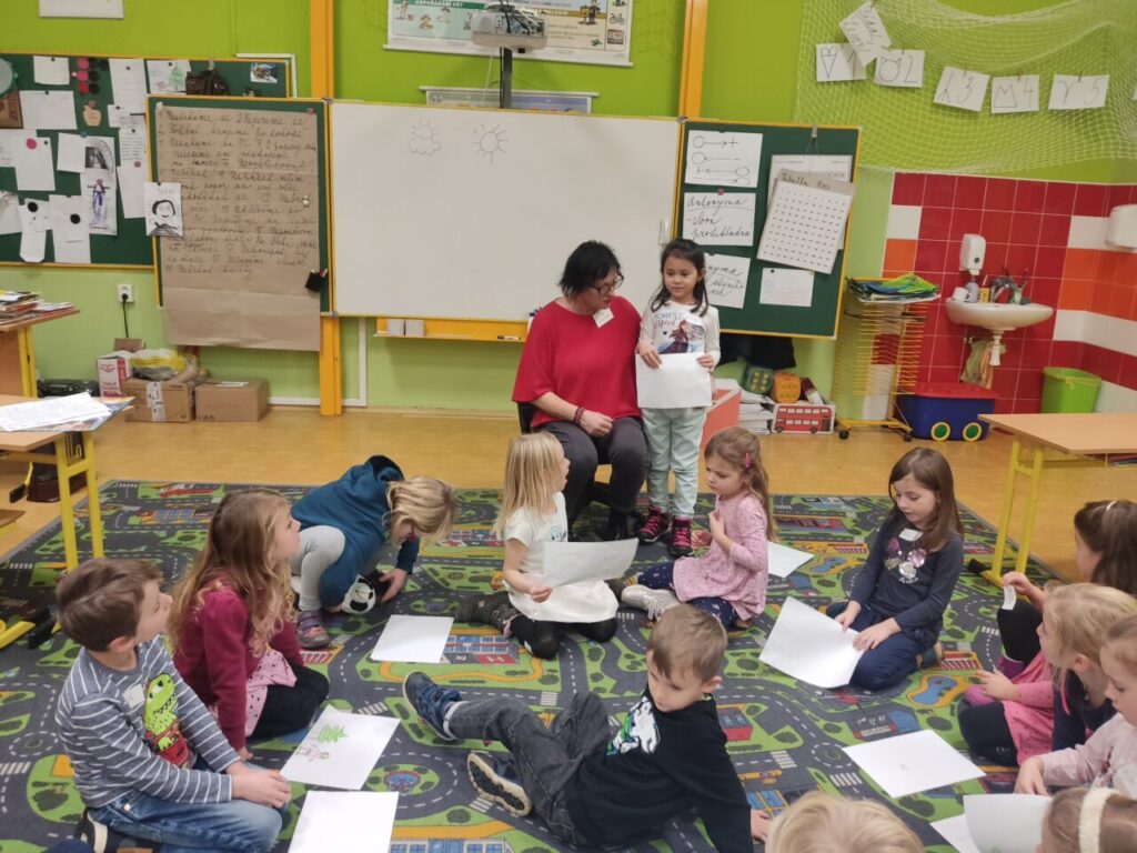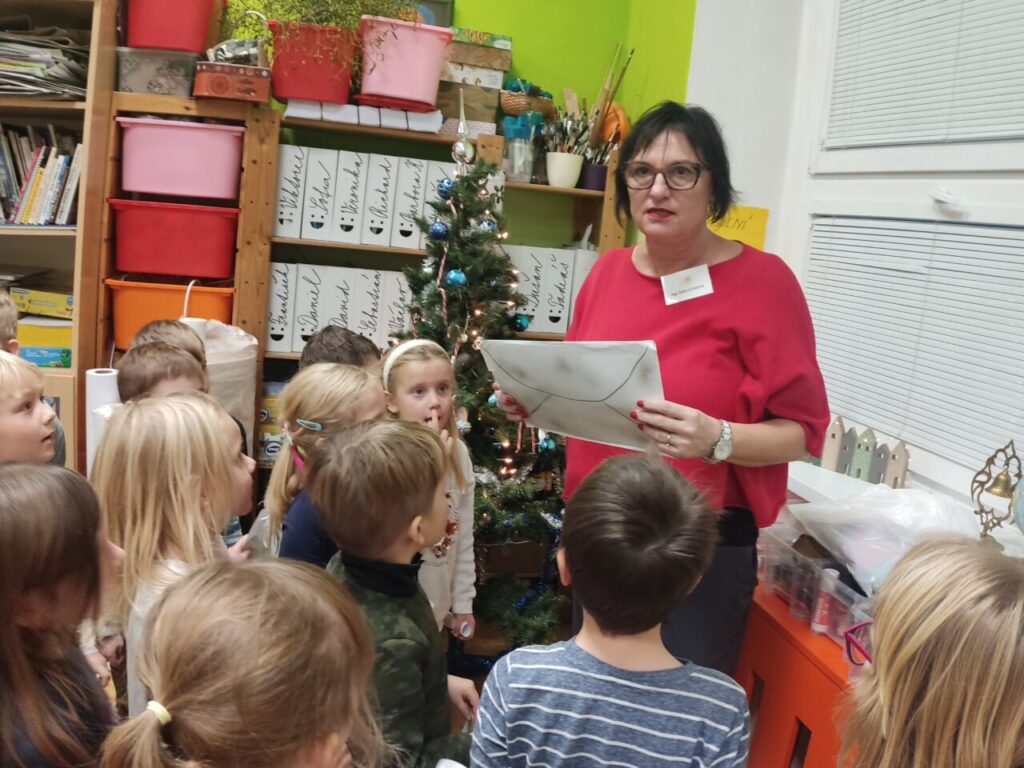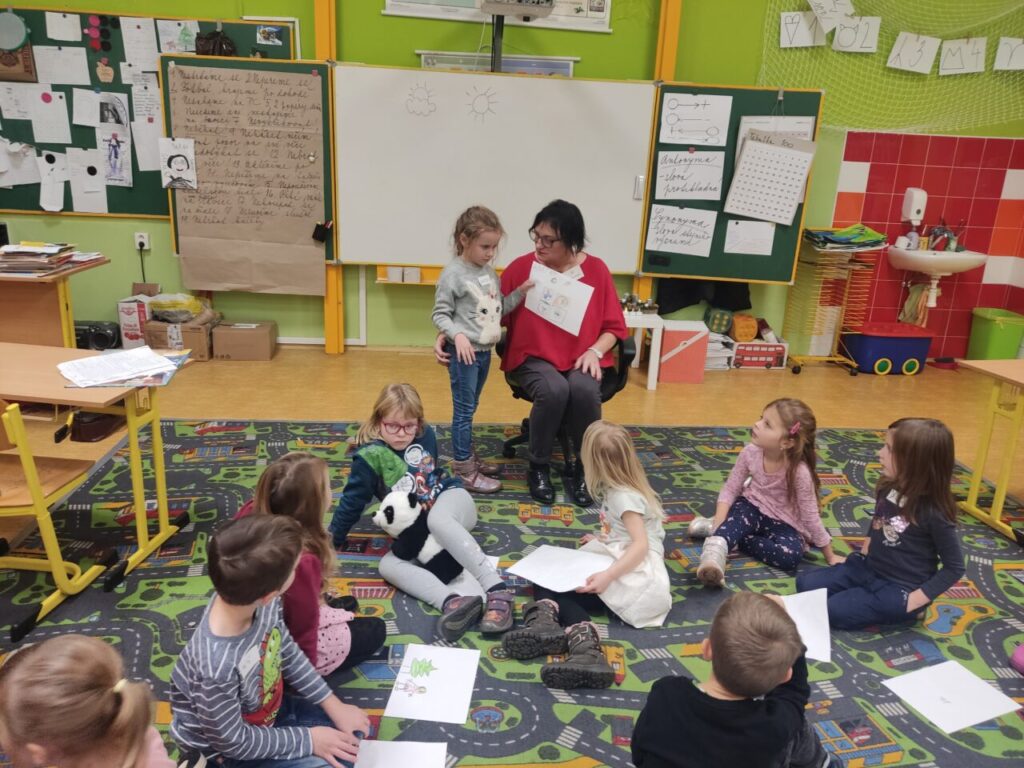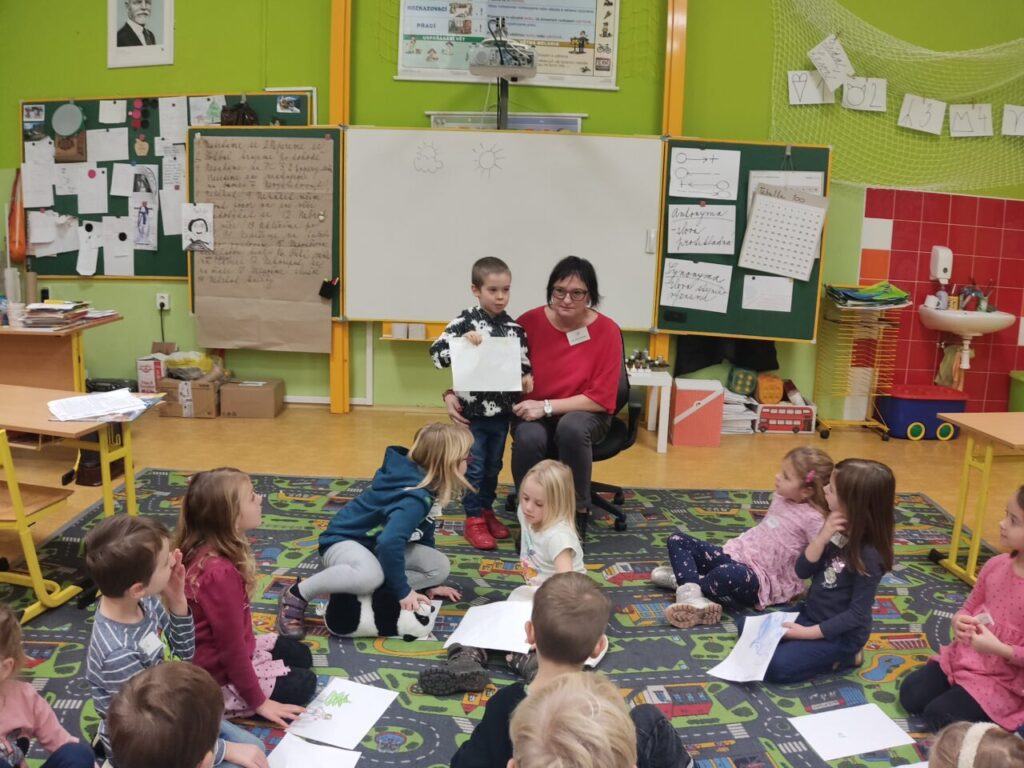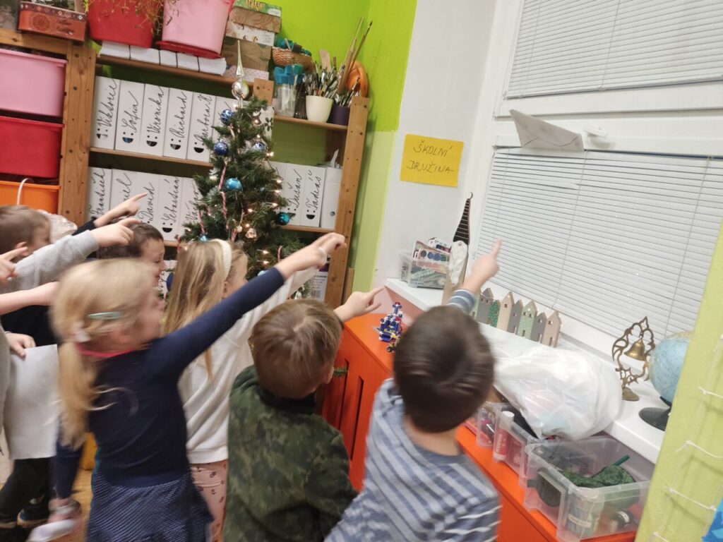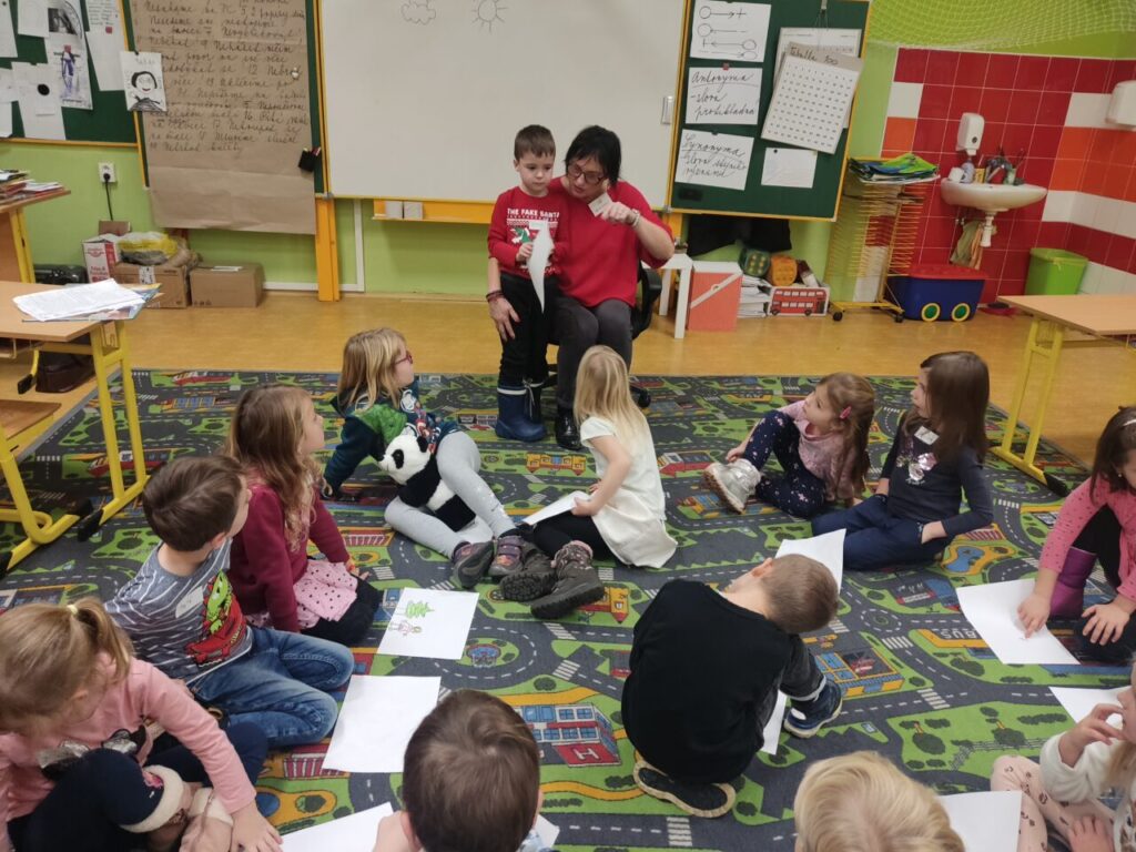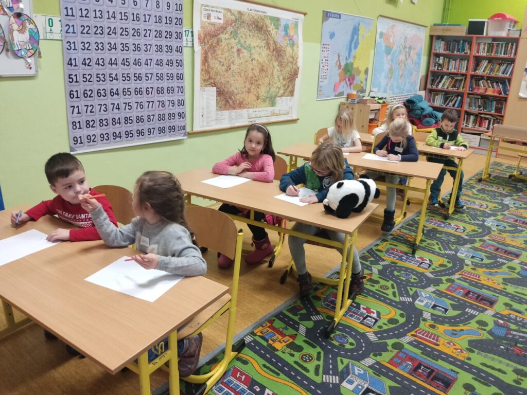 V předvánočním čase děti vyslechly poutavý příběh Jitky Molavcové O sněhu a Ježíškovi. Vyzkoušely čtení s předvídáním, dramatizaci, vyjádření děje pohybem, pantomimu. Nakreslily svá vánoční přání. Hledaly dopis Ježíškovi a přemýšlely, jak je důležité myslet i na ostatní.