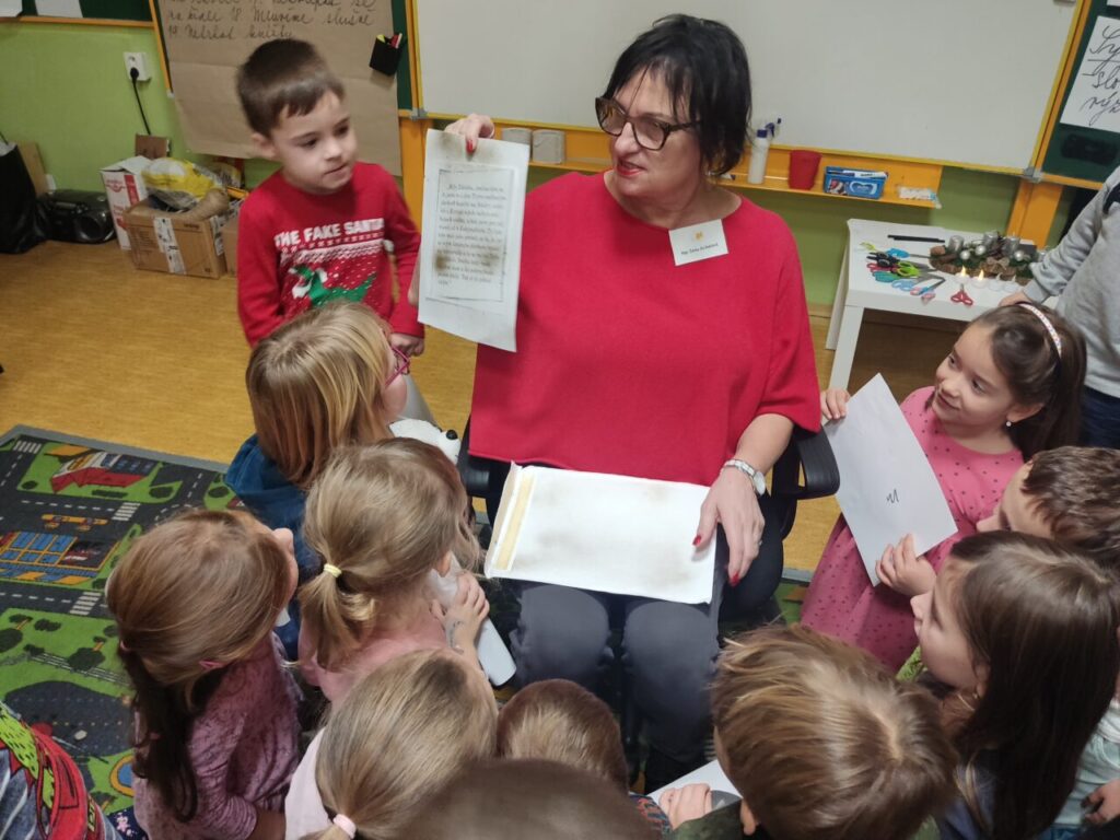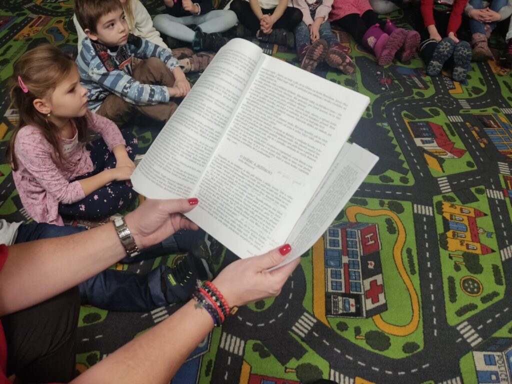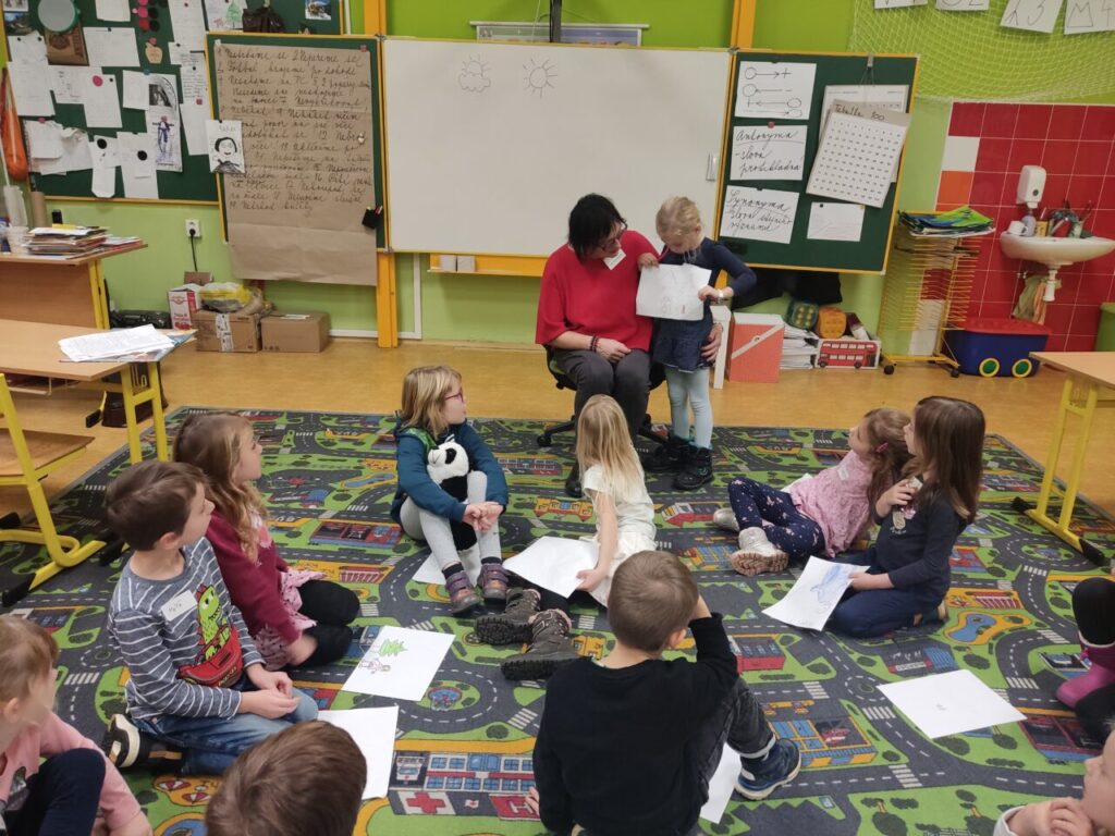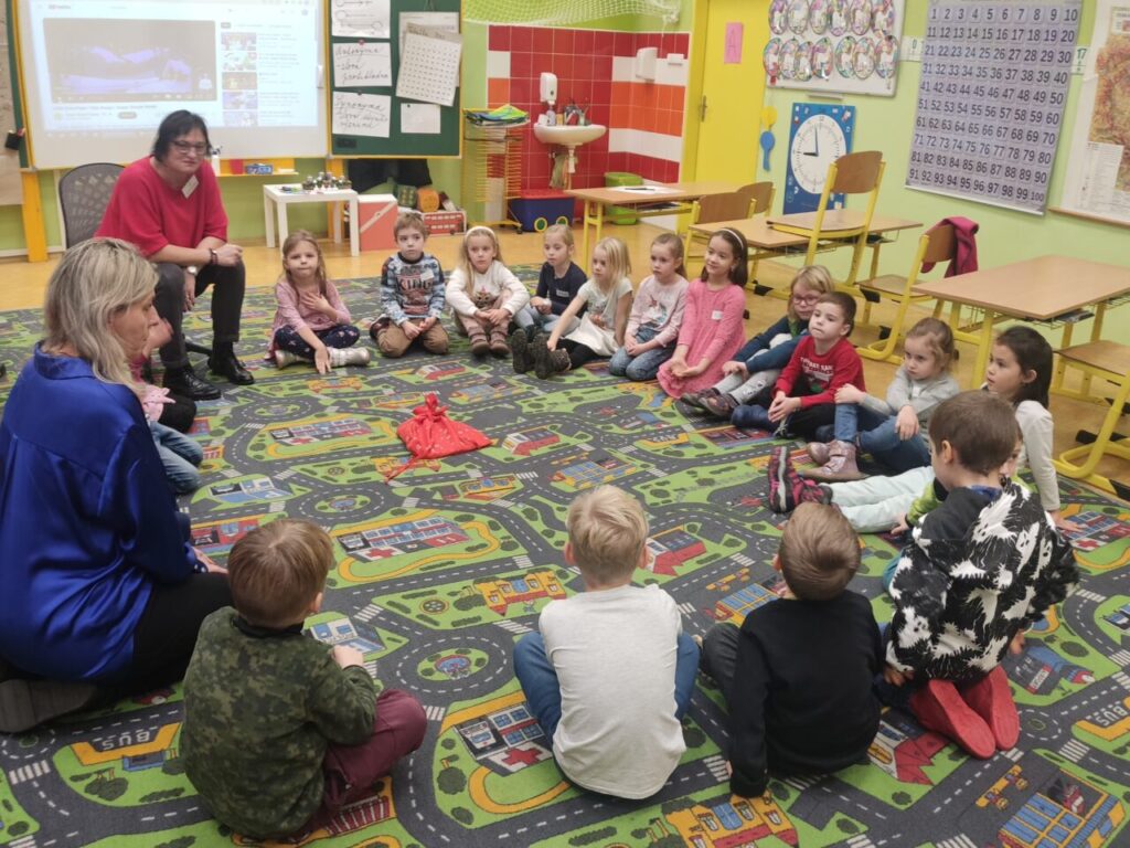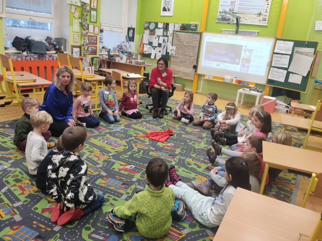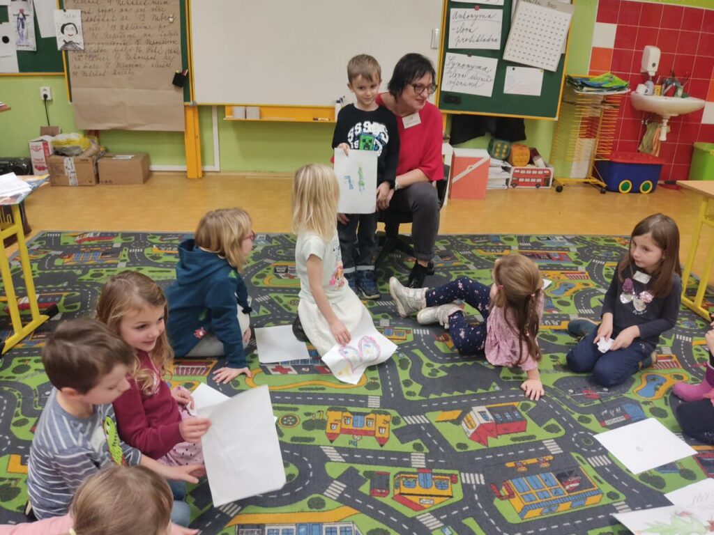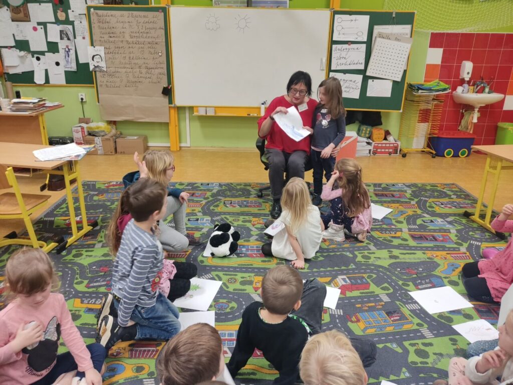 V předvánočním čase děti vyslechly poutavý příběh Jitky Molavcové O sněhu a Ježíškovi. Vyzkoušely čtení s předvídáním, dramatizaci, vyjádření děje pohybem, pantomimu. Nakreslily svá vánoční přání. Hledaly dopis Ježíškovi a přemýšlely, jak je důležité myslet i na ostatní.