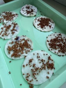 Společně jsme si zaseli řeřichu a každý den sledovali, jak nám postupně roste. Děti si tak mohly vyzkoušet, jak pečovat o rostliny, a zároveň pozorovat změny v přírodě.