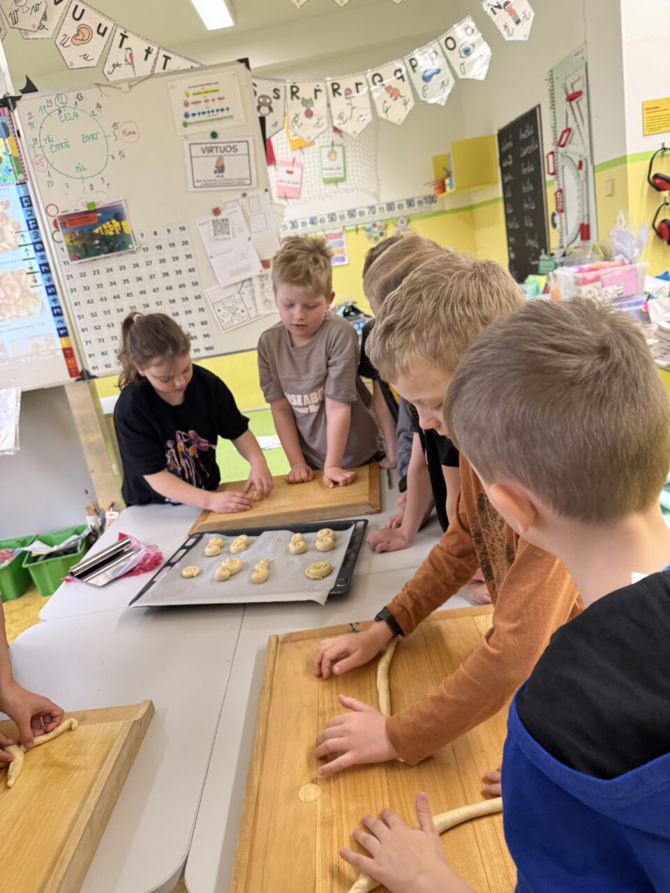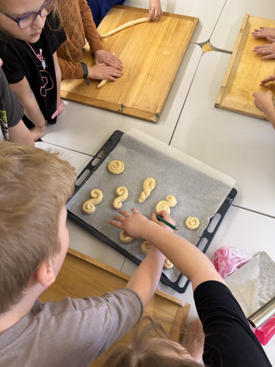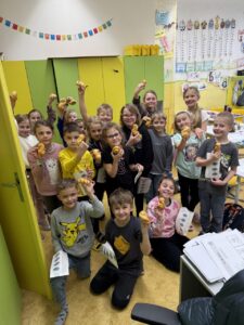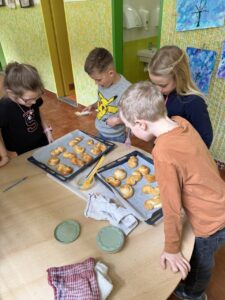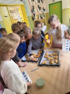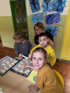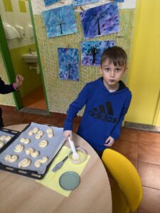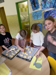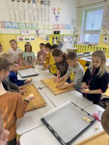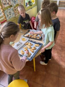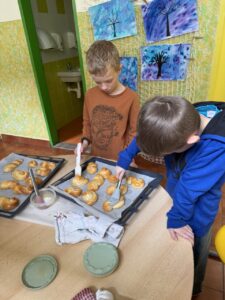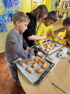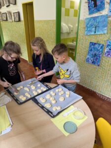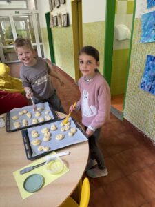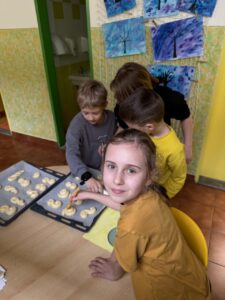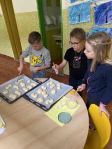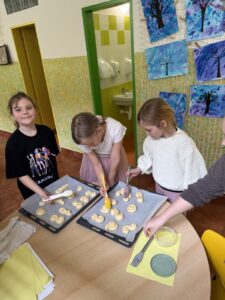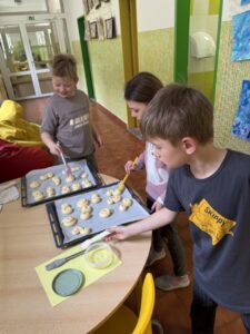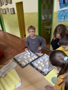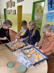 Velkým zážitkem však bylo i společné pečení jidášků. Celou třídou se linula krásná vůně a děti si pochutnaly na vlastnoručně upečené dobrotě. Každý si zaznamenal recept a řada z nich si vyzkoušela pečení i v domácích kuchyních.