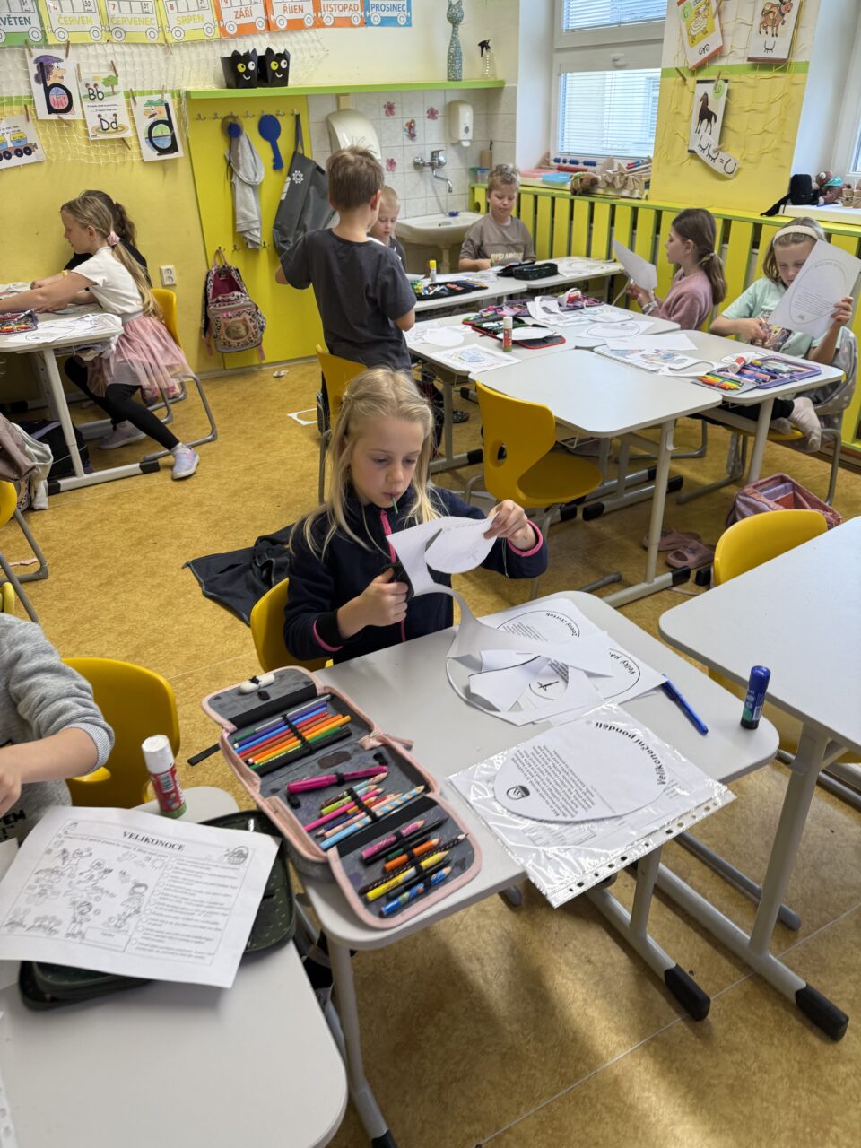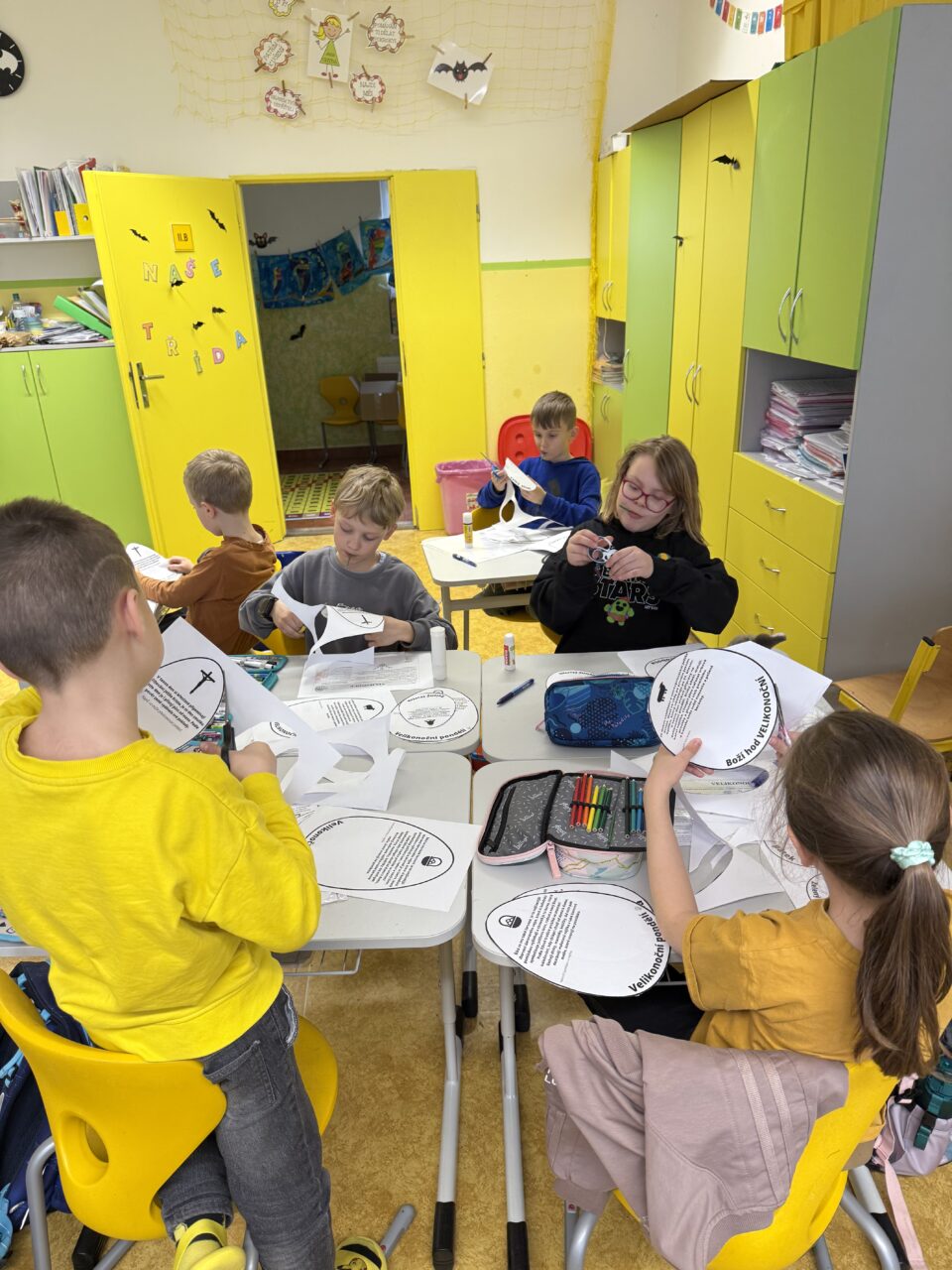 Nechybělo ani tvoření velikonočních dekorací, připomenutí říkadel a koled. V rámci výuky jsme také vyhledávali informace o pašijovém týdnu a povídali si o jednotlivých dnech i jejich tradicích.