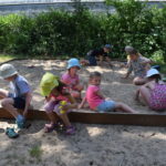 První ročník ze třetího oddělení se vydalo na dětské hřiště k lesoparku Borky. Bylo velké teplo, proto si prvňáčkové hráli převážně ve stínu.