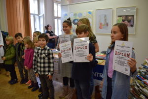 V sobotu 30. listopadu se v Městské knihovně Kolín konala akce Den pro dětskou knihu. Při této příležitosti proběhlo také vyhodnocení výtvarné soutěže s tématem „Cesta kolem světa, aneb, Všechny cesty vedou do Kolína“. Do soutěže doputovalo přes 300 výtvarných prací, které jsou nyní všechny vystaveny v budově knihovny. Naše základní škola se skvěle umístila dokonce ve dvou kategoriích. Natálka Šotolová z druhého oddělení školní družiny obsadila druhé místo v soutěžní kategorii 1.-2. třída. V kategorii skupinová práce jsme obsadili všechny tři první příčky. Na 3. místě se umístili žáci ze třetího oddělení družiny, na druhém místě pak Alenka Hanková a Dominika Krylová z 5.B a první místo obsadila tříčlenná skupinka opět z 5.B – Eleonora Buřilová, Kamila Ďuratná a Vojta Švarc. Všem dětem moc gratulujeme a přejeme mnoho dalších úspěchů!