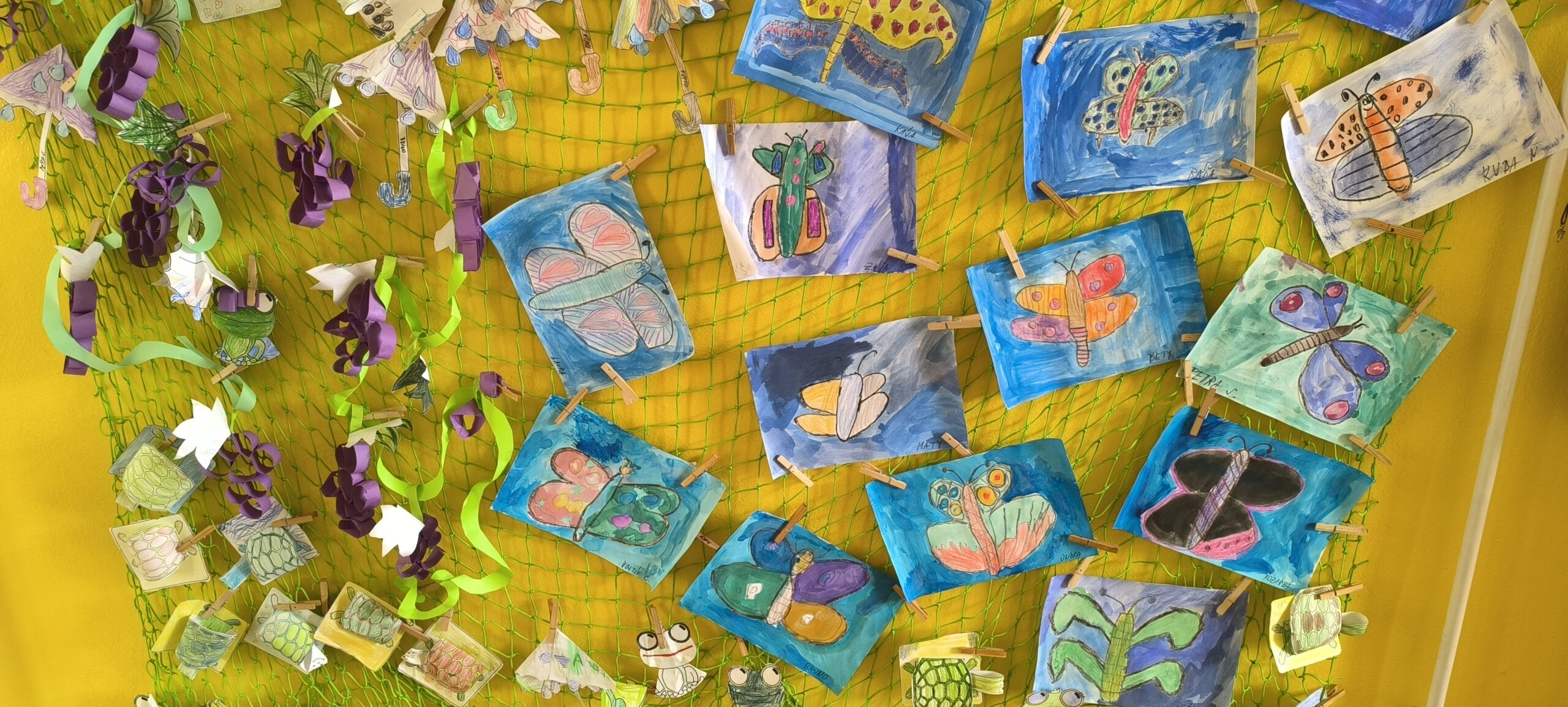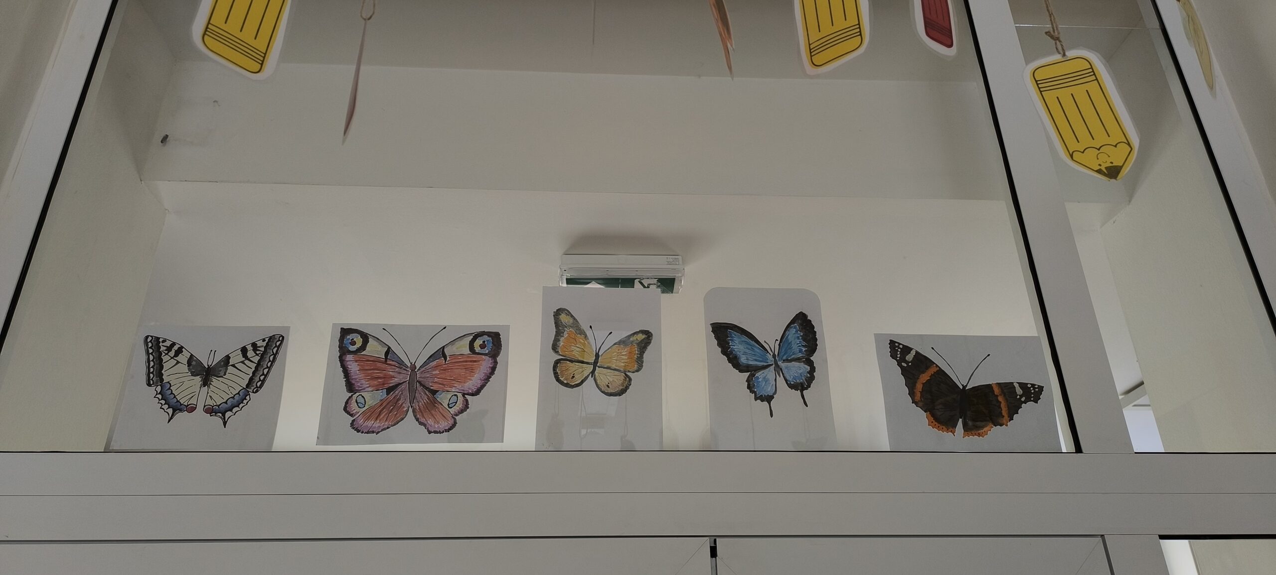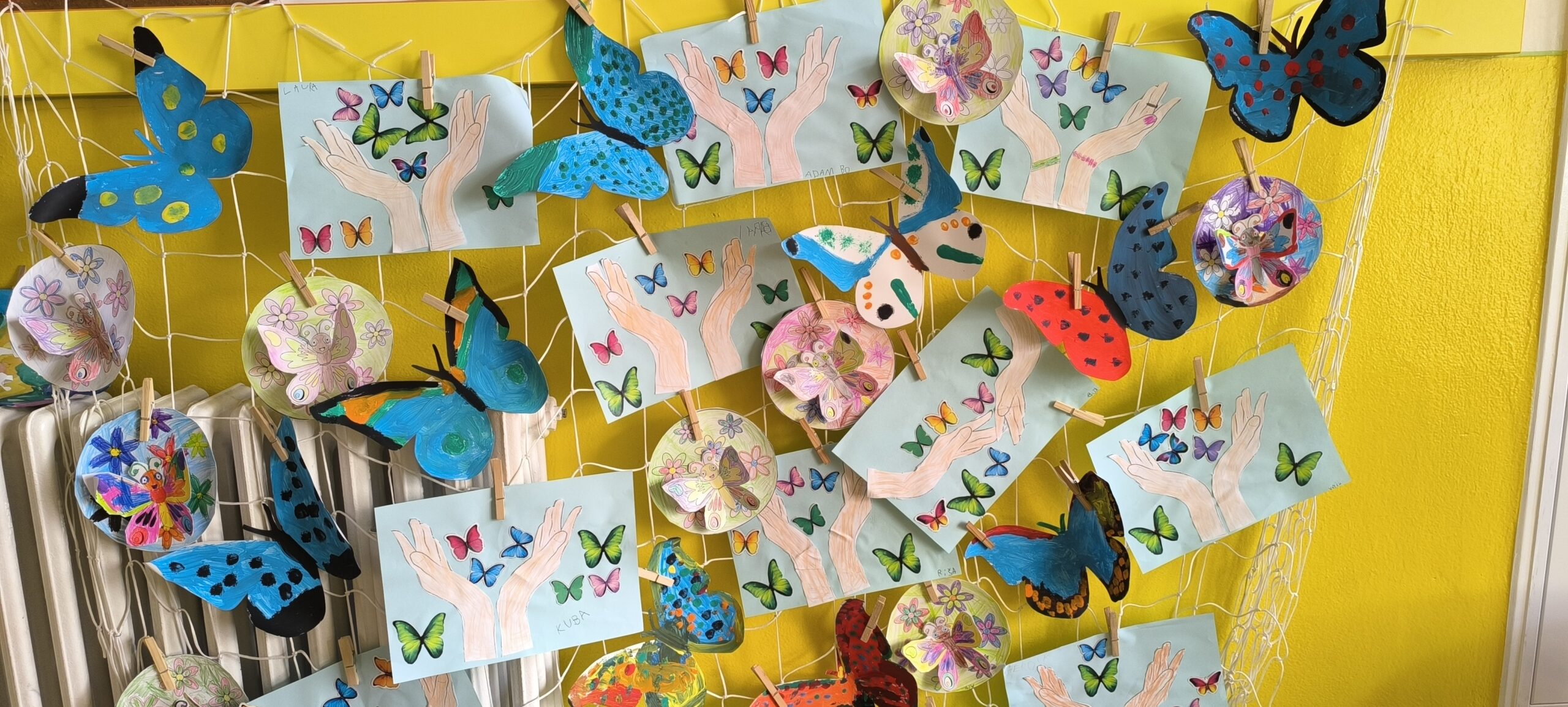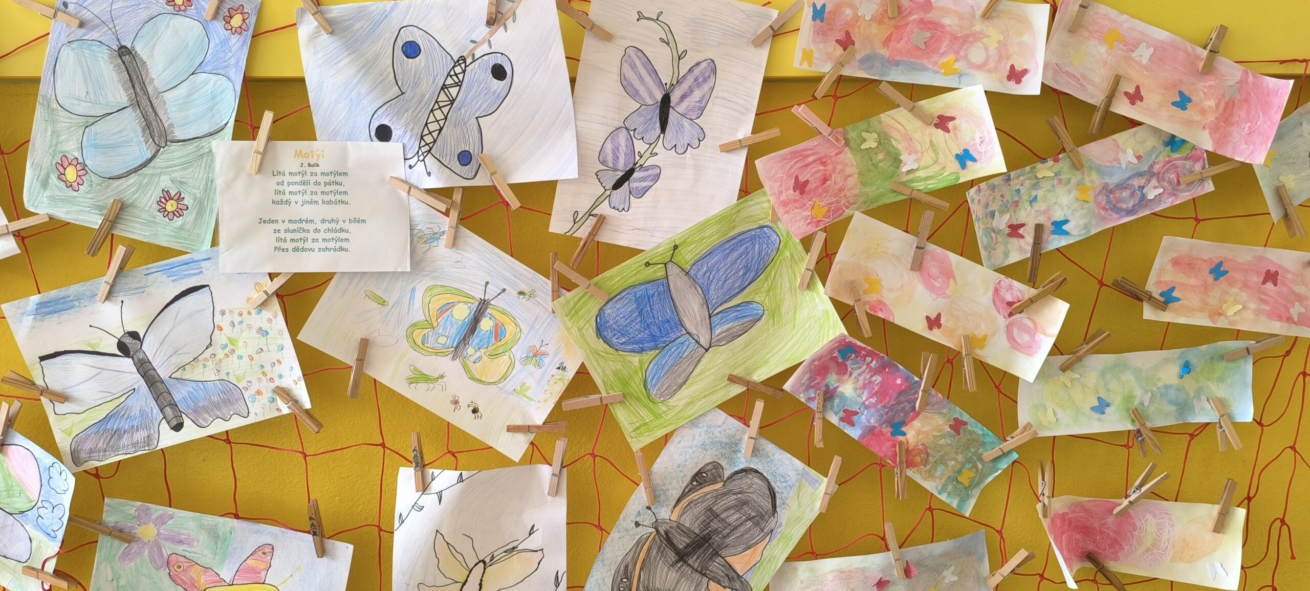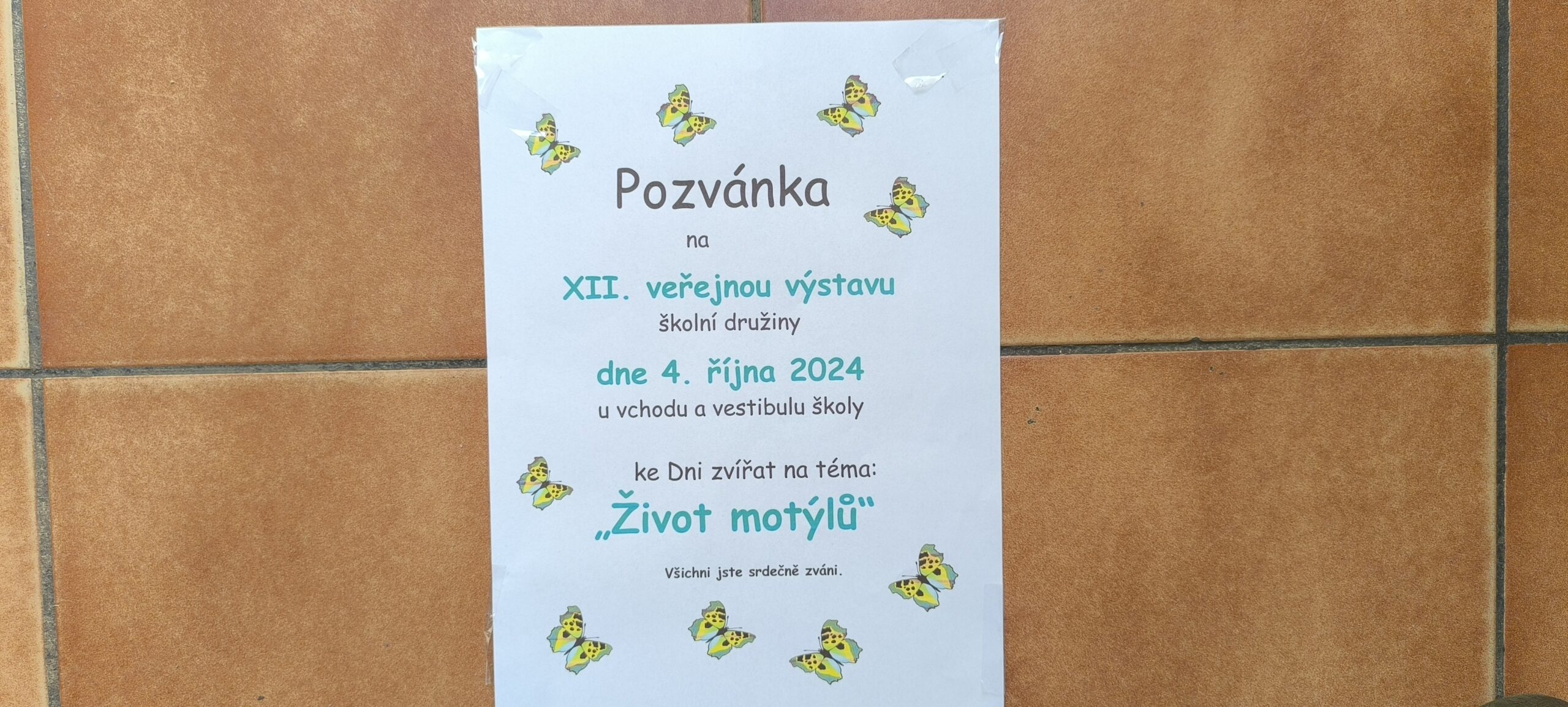 K Světovému dni zvířat uspořádala školní družina XII. veřejnou výstavku výtvarných prací ve vestibulu školy na téma Život motýlů.